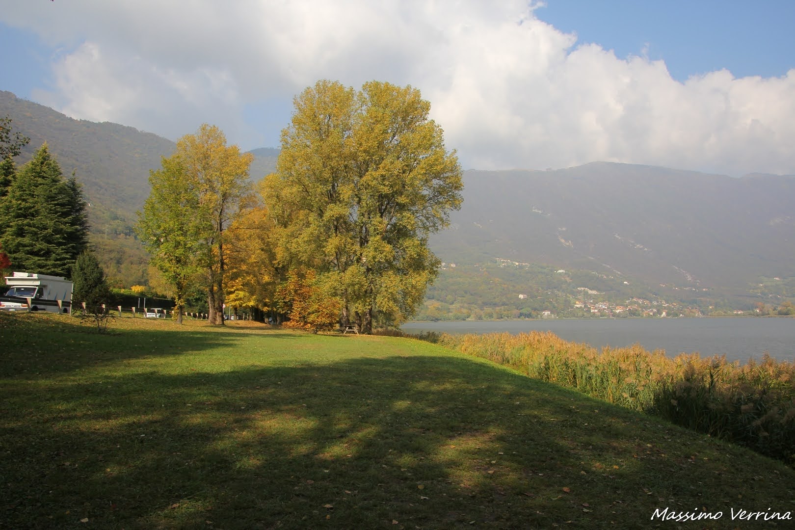 Il sole basso del primo autunno regalava scorci davvero incantevoli, i suoi raggi illuminavano una parte del lago giocando fra le nubi. In prima fila ecco i pedalò a ricordarci la scorsa stagione, quando il lago era affollato dai bagnanti in cerca di refrigerio…