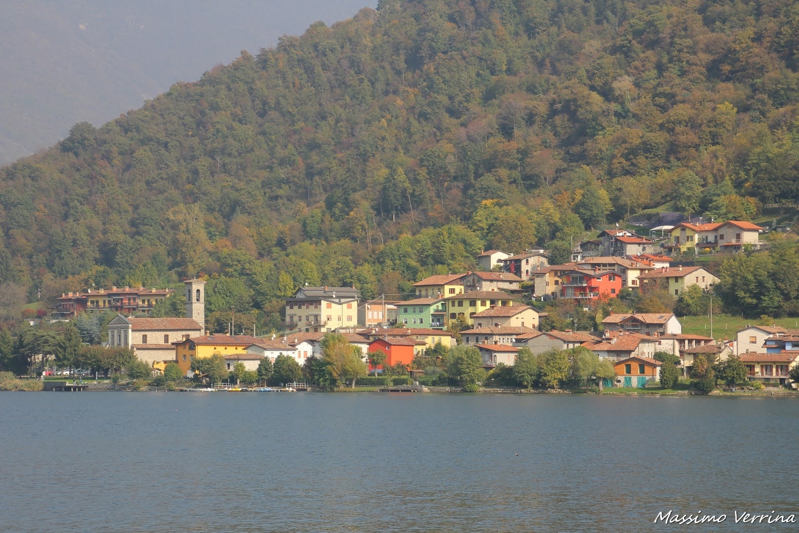 Piccole frazioni con case coloratissime rompono la continuità del verde, fra quei monti che sembrano non avere confini, e la vastità del lago che avvolge l’intero paesaggio con la mutevole bellezza dei suoi scorci autunnali….