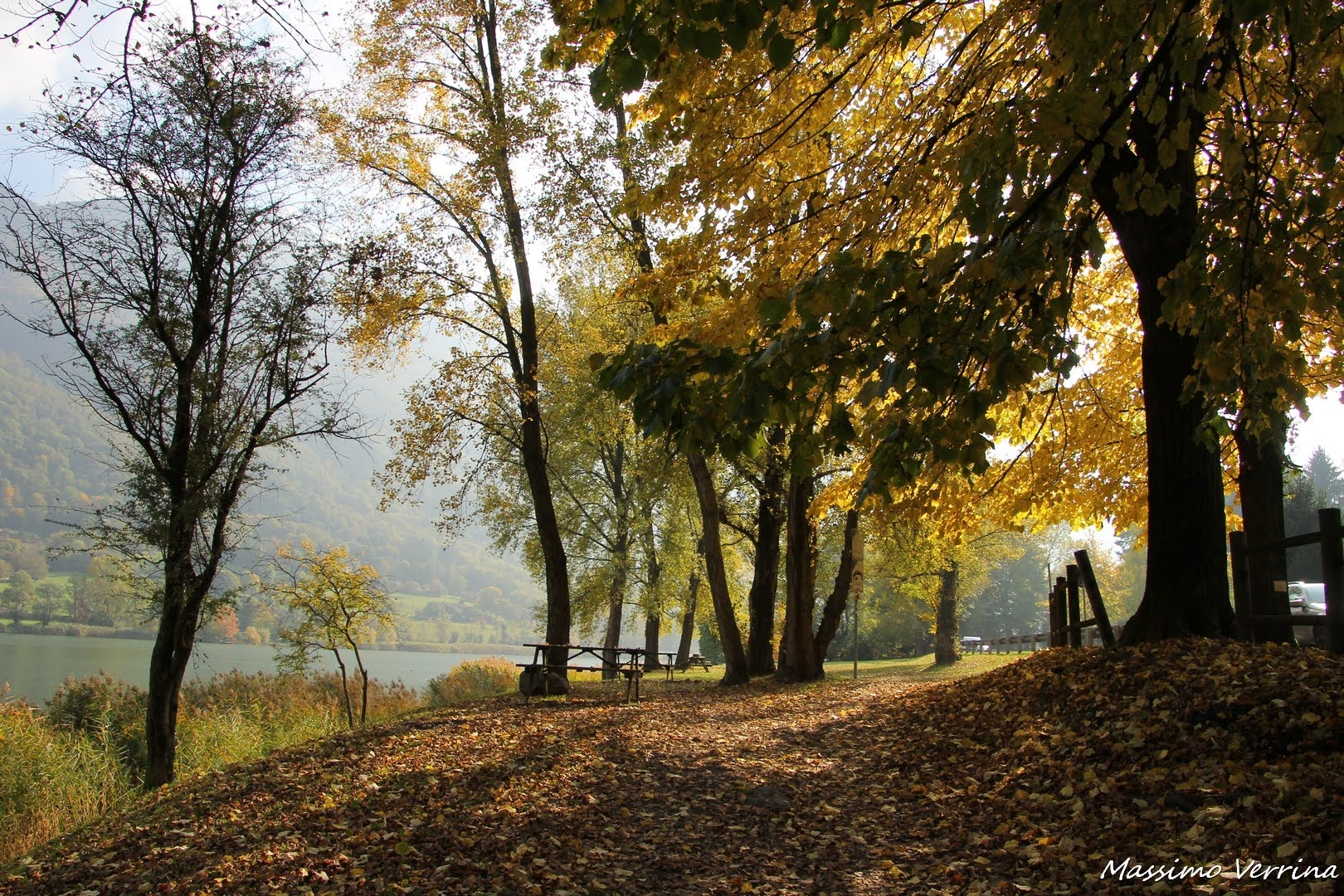 Ecco un altro punto splendido dedicato all’autunno, alla bellezza dell’immagine in se stessa aggiungo una riflessione romantica, immaginate di essere lì con una persona che amate, siete abbracciati, la brezza vi sfiora il viso, muove i capelli di lei, davanti a voi la pace del lago, e tanti sogni da raccontare…