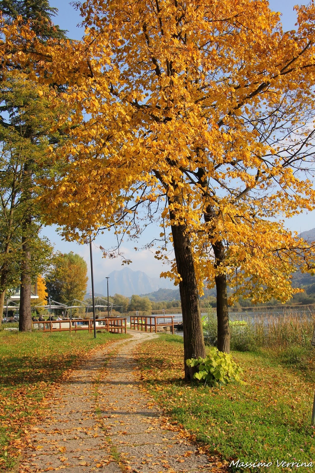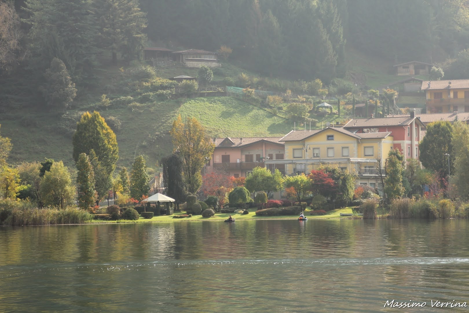 Sull’altra sponda del lago la bellezza dei colori mi stava chiamando, scorgo un attimo davvero incantevole, che vi descrivo in questa prima didascalia. E’ appena passata una piccola barca, la scia del suo passaggio è come la riga di una penna su un quaderno. In lontananza un giardino meraviglioso e altri pescatori contribuiscono a rendere incantevole anche questo tratto di percorso, c’è poco vento qua, il clima è piacevole, il sole pallido di ottobre si apprestava a scendere dietro le alte valli….