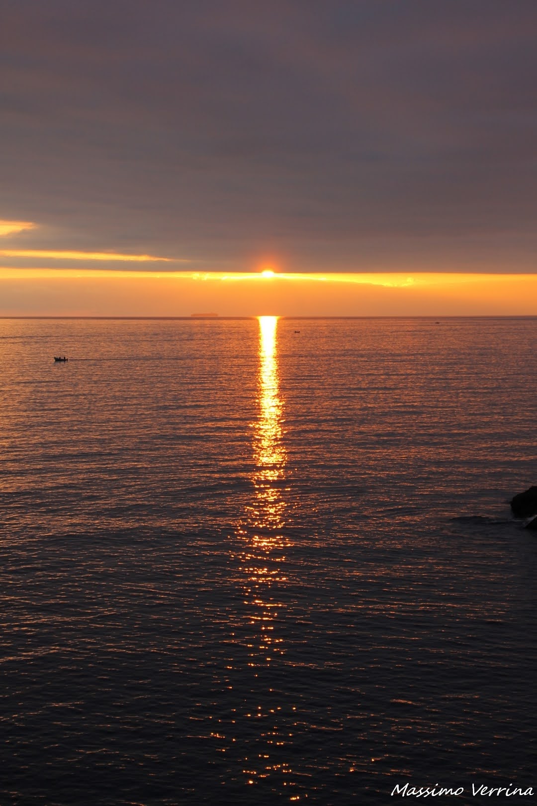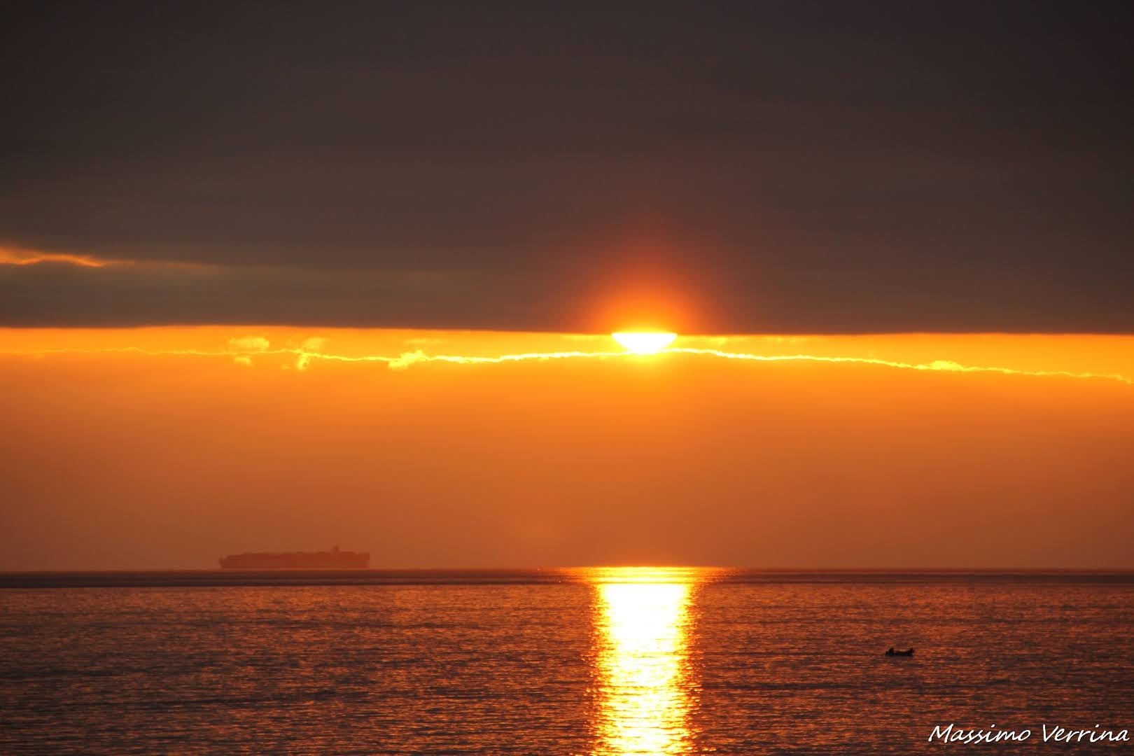 Saluto l’ultimo raggio di sole con questa immagine in cui la perfetta divisione in 3 parti crea una visione artistica molto particolare. Un effetto scenografico che è stato possibile grazie alla simbiosi fra sole e nubi, mare e sole….