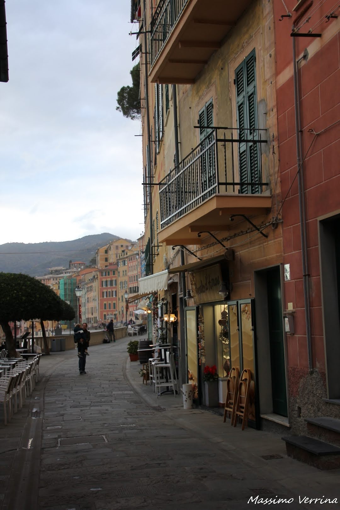 Ogni anno vi faccio vedere Camogli nelle luci bellissime del tramonto in una giornata di sole, col suo mare che diventa oro, e quei raggi che accarezzano l’arenile. Quest’anno ho scelto di farvela vedere in una grigia giornata invernale, una di quelle giornata che spesso non si ha neppure voglia di uscire. L’atmosfera che ne è venuta fuori è sicuramente originale. Iniziamo entrando nella sua passeggiata dal carruggio verso levante….