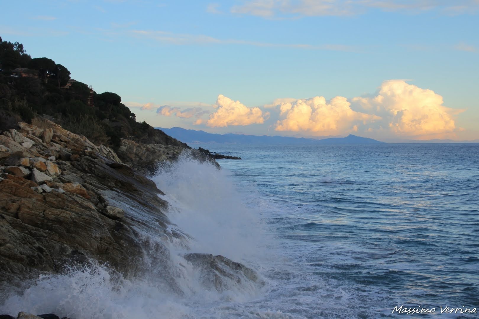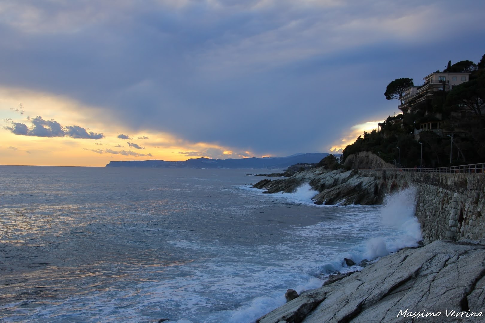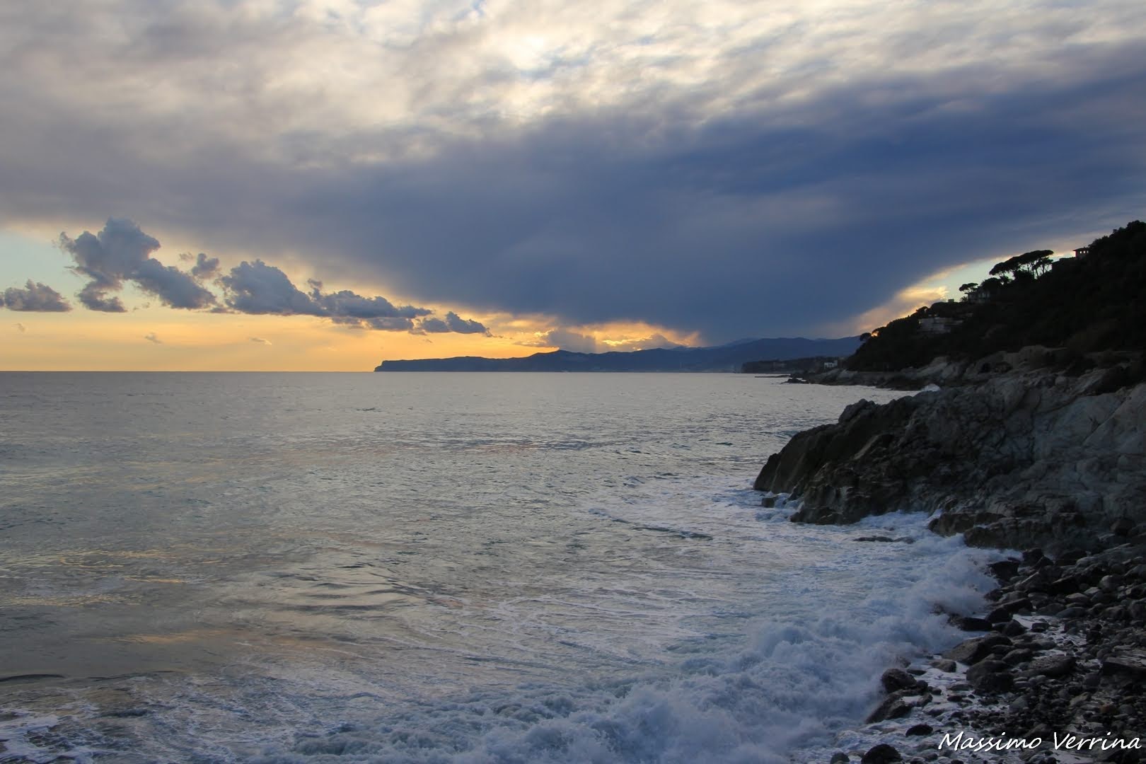 Questa seconda parte del viaggio la dedichiamo ai paesaggi che s’intravedono nel tratto di passeggiata che ci porta a Varazze. Quella che vedete è la Riviera di Ponente nella magica cornice di un tramonto che stava per avere inizio….