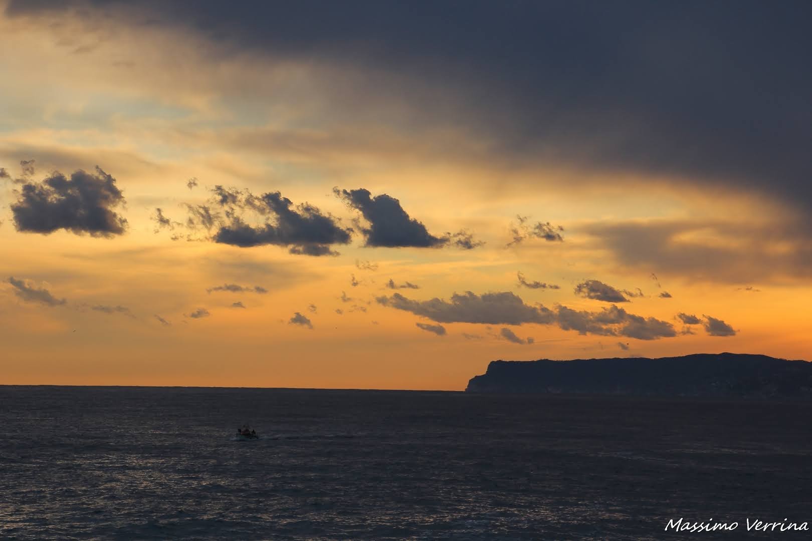 Più passavano i minuti e più il cielo si faceva interessante, i colori sempre più vivi si apprestavano a dare spettacolo per il gran finale del giorno. Una piccola imbarcazione stava rientrando a riva, il vento della sera cominciava ad accarezzare il mare e farci sentire il primo freddo…