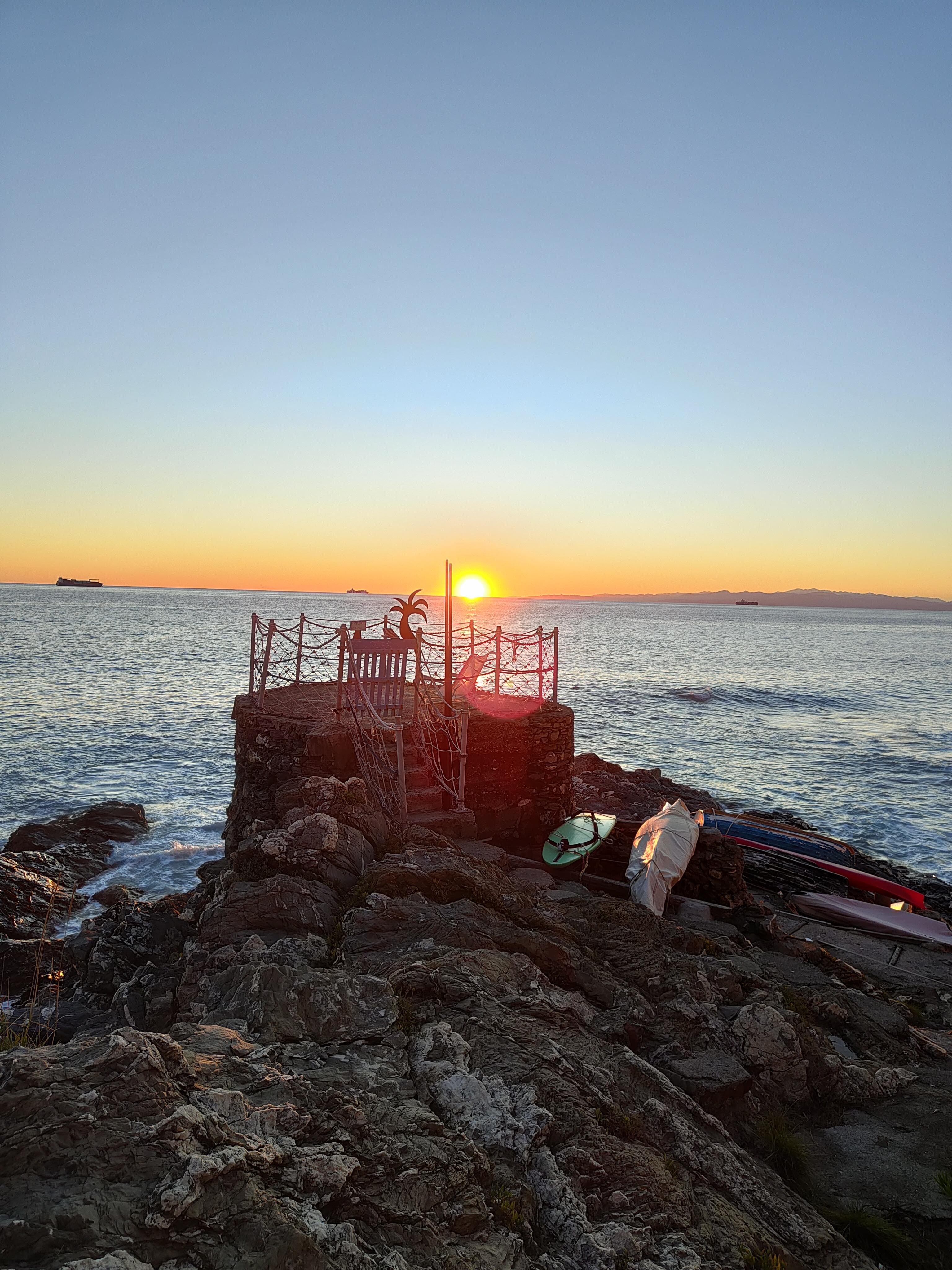 Il sole si appresta a calare, scelgo una inquadratura particolare per raccogliere le ultime luci, una palmetta finta creava una cornice perfetta per questo scenario tropicale. Se non fosse stato per il freddo si poteva anche immaginare di essere alle Hawaii …
