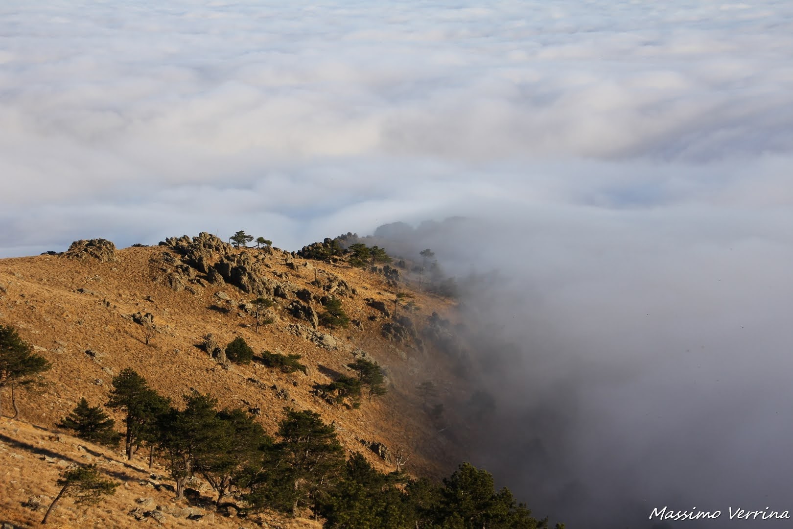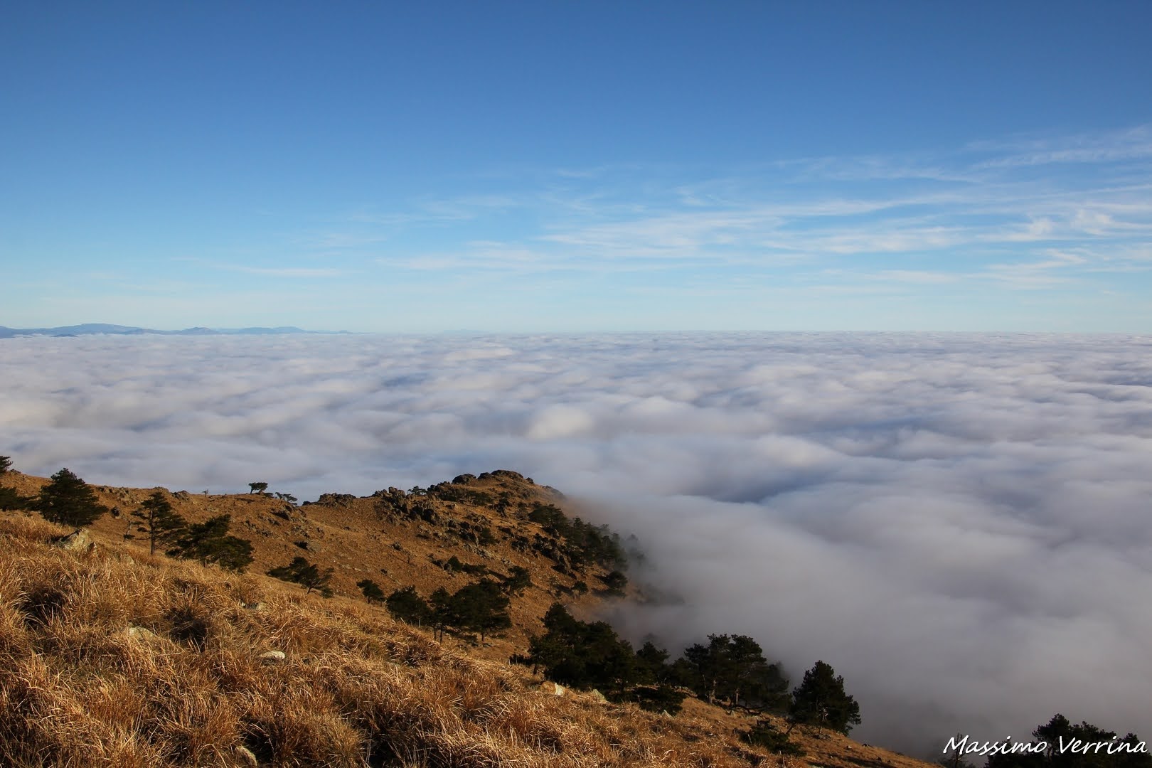 Mentre il sole era ancora accecante ecco il freddo, giunse all’improvviso, accompagnato da quel fiato di nebbia, era incredibile, nel giro di 50 metri c’era una differenza di temperatura enorme, prima saremo stati a 16°C, qua ce n’erano 5°C. Si percepiva ovunque, il sudore della salita scomparve all’improvviso, quasi a ricordarmi che l’inverno era lì, a pochi passi da me…