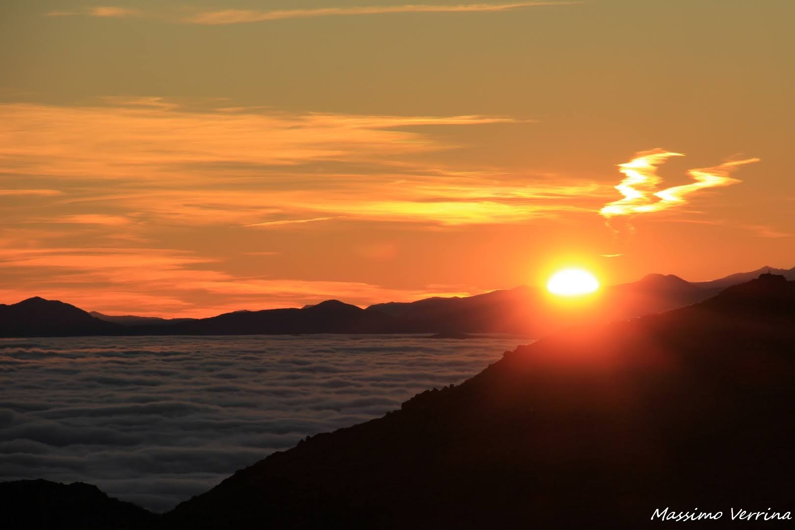 Tra fiati di nebbia e colori cangianti, ecco il tramonto. Arrivava veloce, come quelle ombre che a stento riuscivo a rincorrere su per gli irti crinali. Mi avvolgeva con i suoi colori, con quella dorata sfumatura che cambiava ogni cosa, ogni singolo particolare. Davanti a me un tappeto di fuoco si stendeva fra le ciglia della sera…