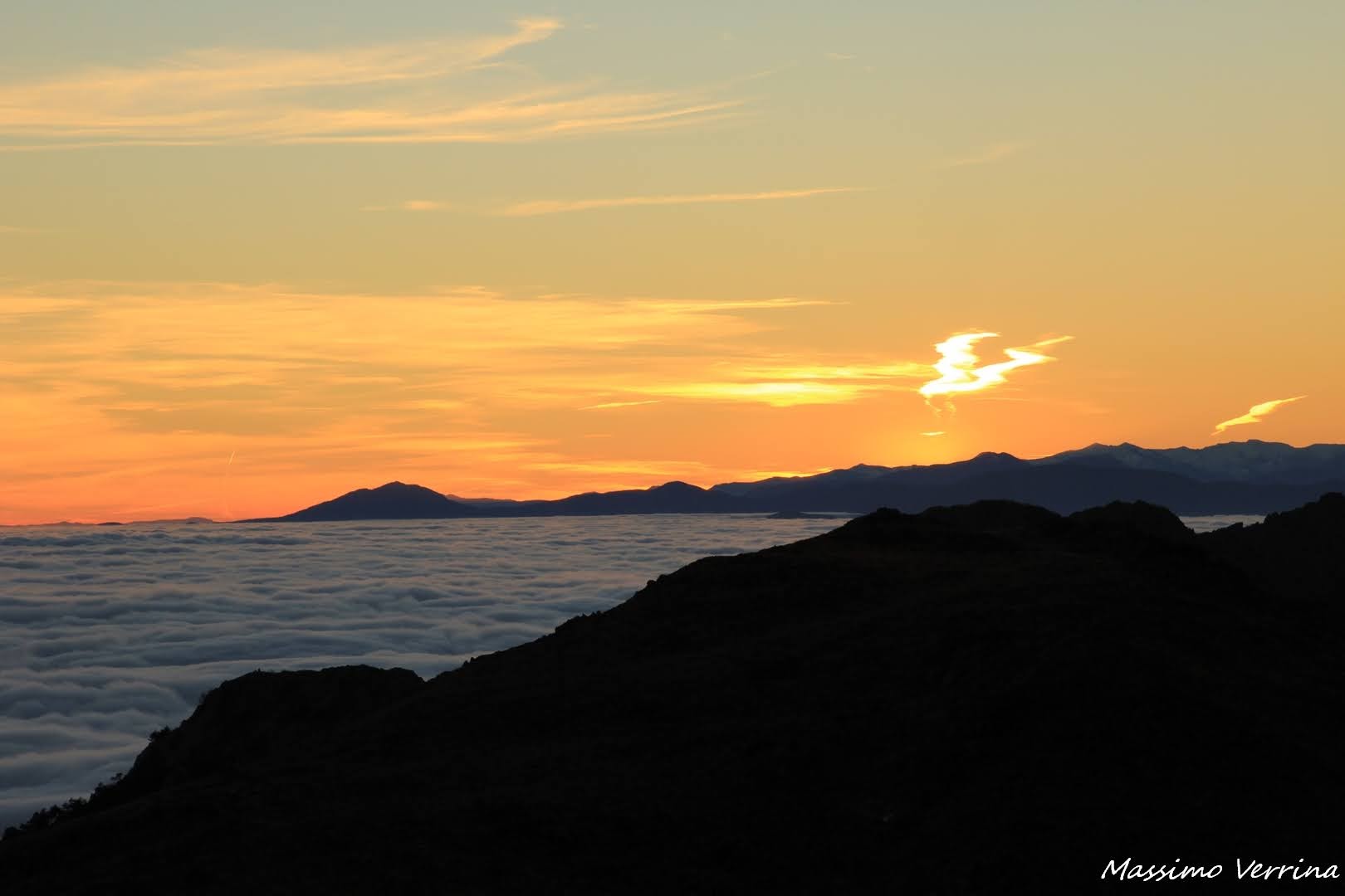 Raggiungo la vetta pochi istanti prima che il sole saluti del tutto il giorno, riesco a posizionare la reflex per un autoscatto, mi posiziono nel punto esatto, ed ecco che da dietro all’obiettivo ora divento complice del mio stesso scatto…..