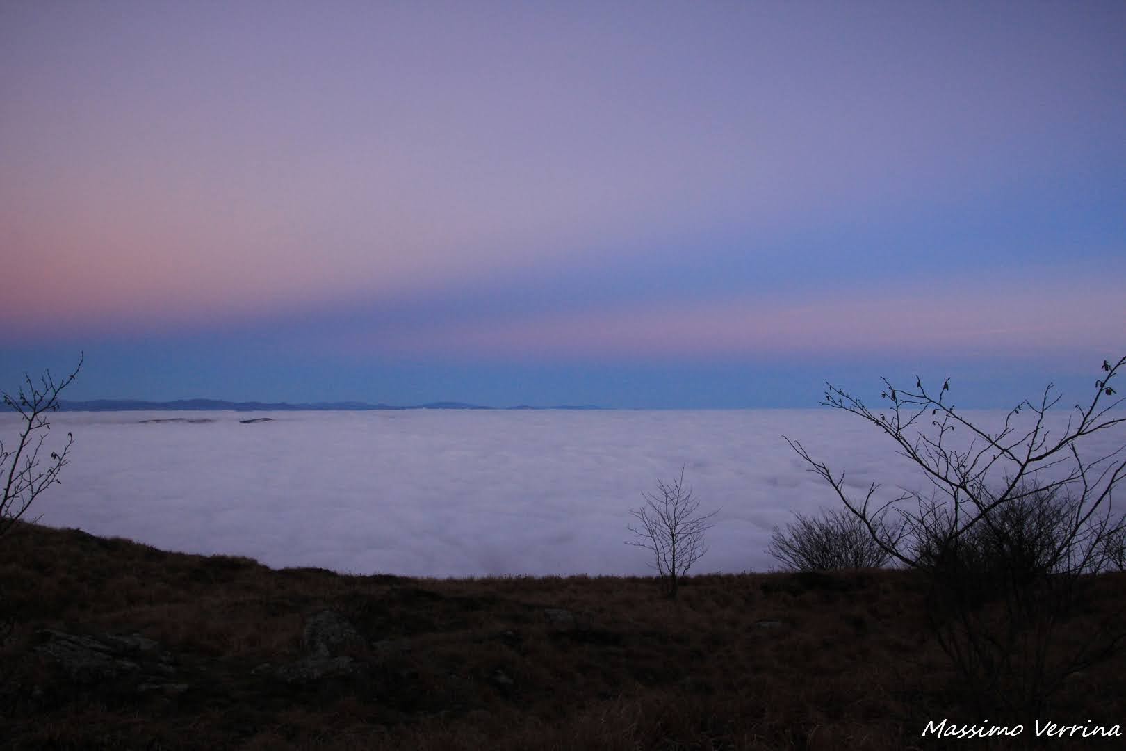 Oltre le nebbie, sua maestà, il Monviso, sembrava sorvegliare la vasta pianura dall’alto delle sue vette. La luce dorata del tramonto era incantevole, e donava un’aria di magia a tutta la scenografia, compreso il tappeto di nebbie basse….