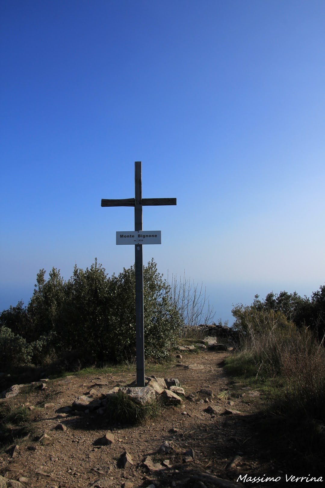 Eccoci in vetta, la Croce indica proprio il punto esatto, poco più in là una piccola piazzola da dove ammirare il paesaggio, dove fra le altre cose mi ero fermato a mangiare. Ed ora vi faccio ammirare le ampie vedute…..