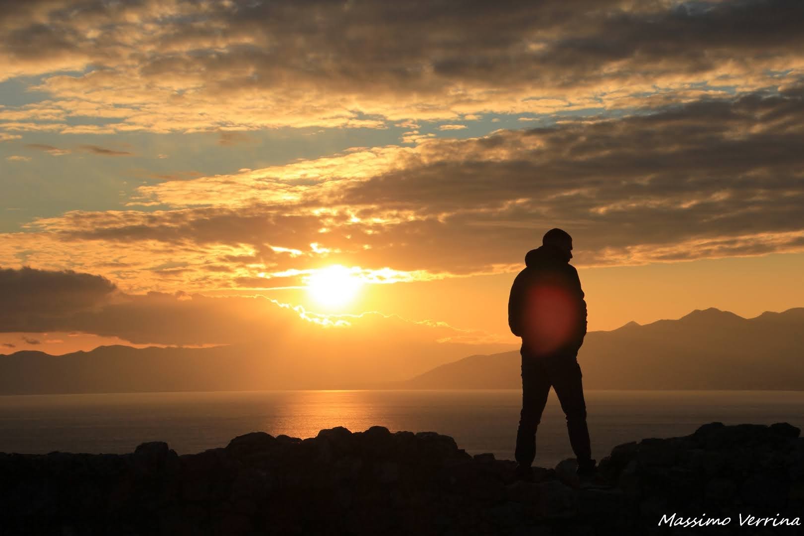 Torniamo al nostro tramonto, siamo ormai nel momento clou, tutti sono pronti a scattare immagini, io lo ero già dal pomeriggio 😁 siamo sempre sul punto più alto del promontorio di Punta Crena. Ho scelto d’inserire una sagoma in controluce per dare risalto ai contrasti spettacolari di questi attimi di luce….