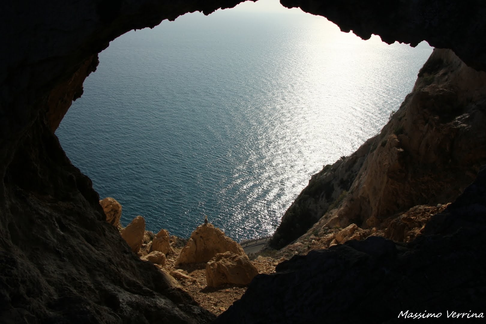 Ed ora una piccola curiosità, vedete quel foro nella roccia? E’ la grotta dei briganti, che si raggiunge con un magnifico sentiero, il sentiero del pellegrino, che parte da Varigotti e arriva a Noli, ne avevo parlato anni fa, vi mostro una foto di quell’escursione per farvi vedere com’è…😉