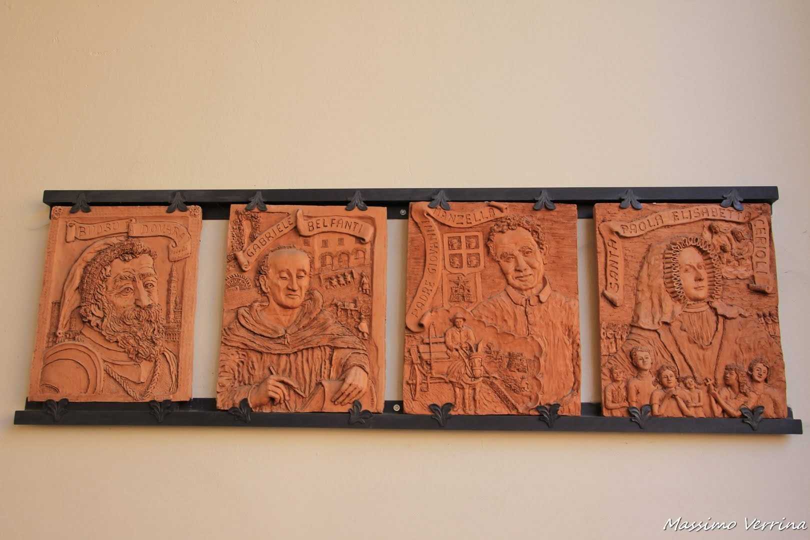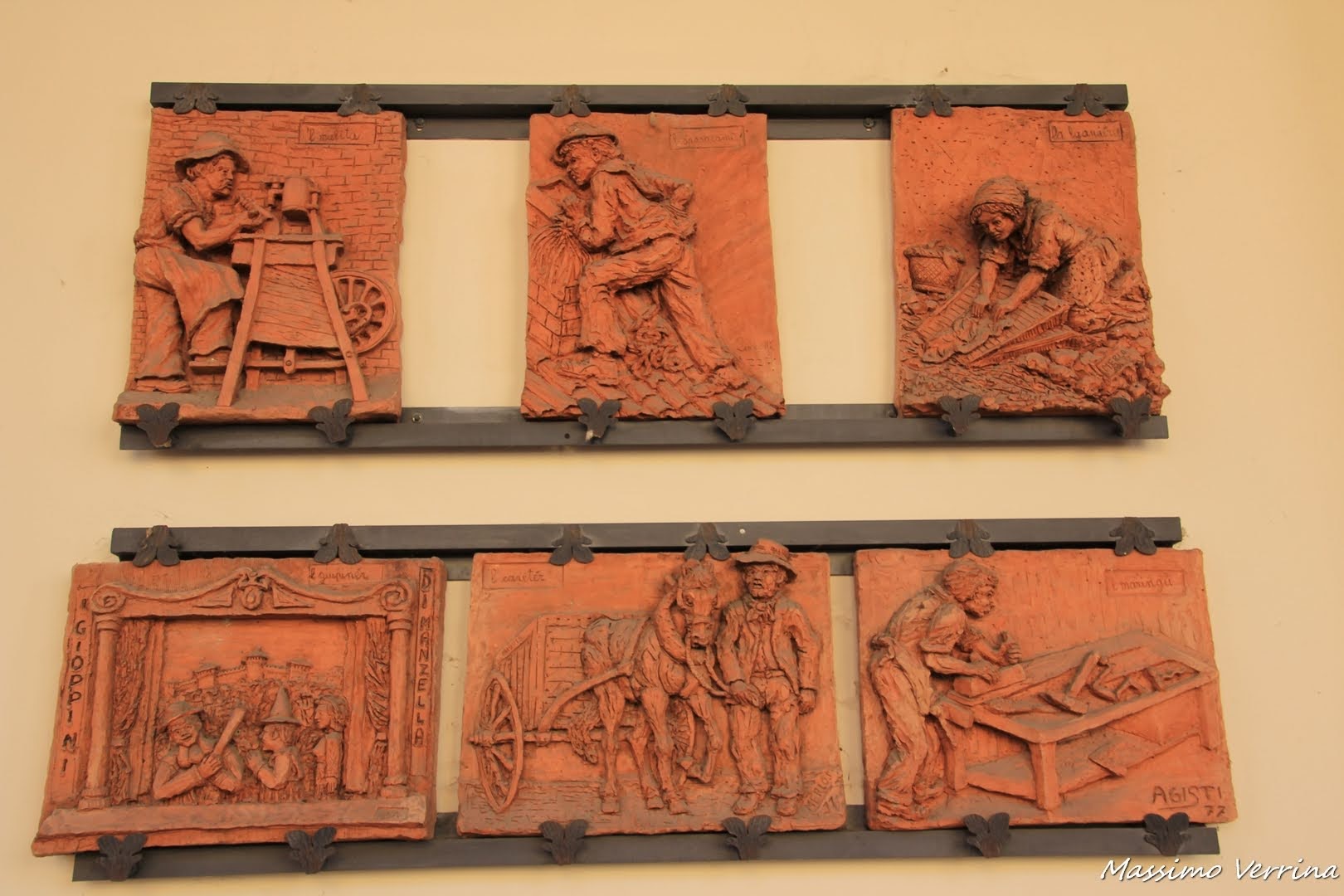 Le opere esposte sono davvero tante, io ne ho colte solo alcune a titolo di esempio. Giusto per farvi vedere anche altri aspetti di queste tavolette artistiche, oltre ai mestieri di un tempo che abbiamo visto nei primi due quadretti, qua sotto ne vedete uno dove sono riprodotti alcuni personaggi storici. Anche in questo caso i dettagli sono pregevoli, notate il copricapo della donna sulla destra, davvero meritevole di attenzione a mio avviso….