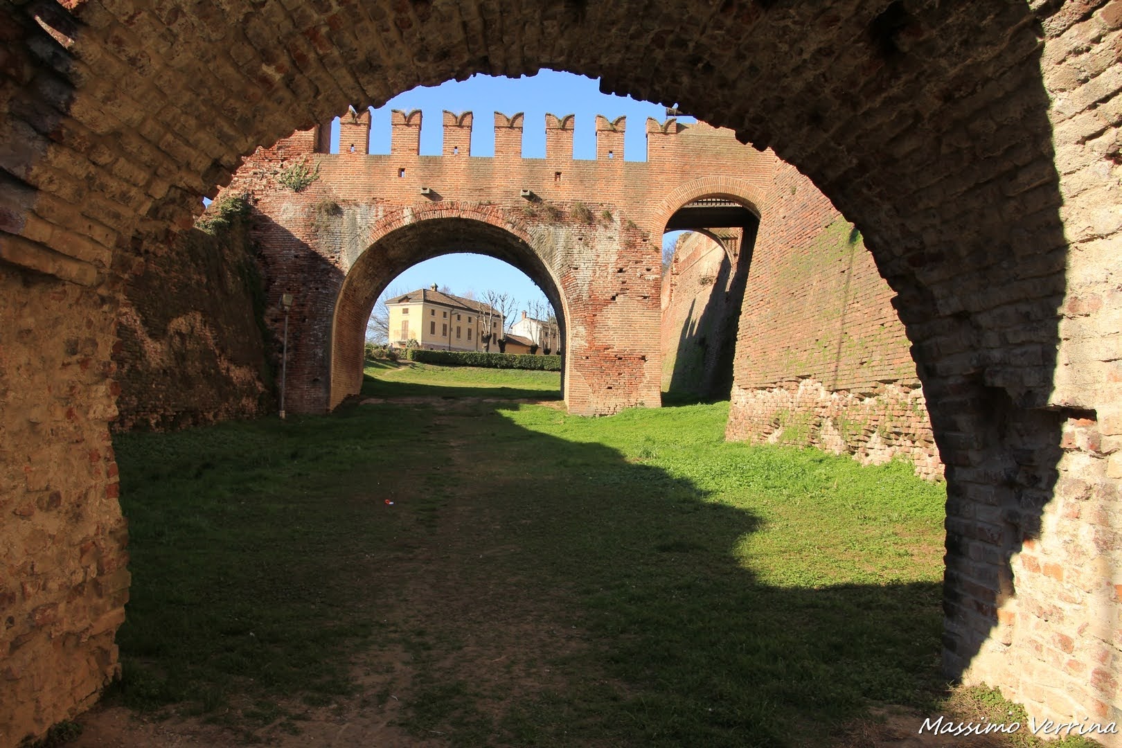 Con i portici che avete visto con la copertina di oggi chiudiamo la visita a Soncino. Come avete potuto notare c’è anche un lungo camminamento al coperto, in caso di pioggia in questo borgo si può passeggiare all’asciutto, almeno nella via centrale. Per certi versi, anche se molto più in piccolo, ricordano un po’ i lunghi portici di Bologna. Ed ora per chiudere questa visita ripercorro il perimetro del Forte cercando nuove prospettive, nel mentre vi racconterò ancora qualcosa di questo borgo….