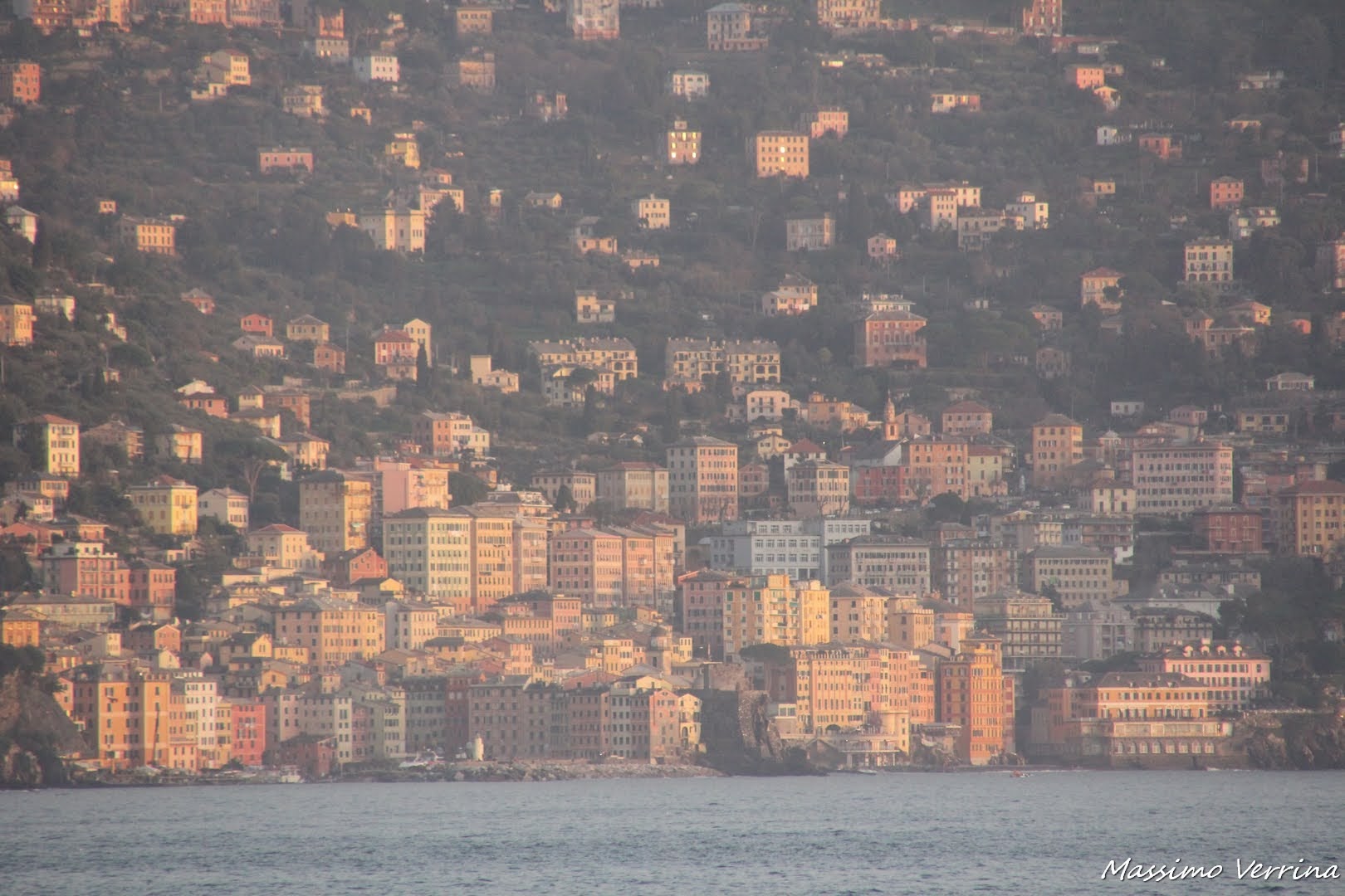 Con un potente teleobiettivo o con dei binocoli se li avete con voi, si può vedere la bella cittadina di Camogli, di cui ho parlato spesso nel mio blog, e che nella prossima immagine la potete vedere dal mare, con i suoi colori caldi che precedono la sera, e con quella bellezza unica che contraddistingue questo angolo di Liguria…
