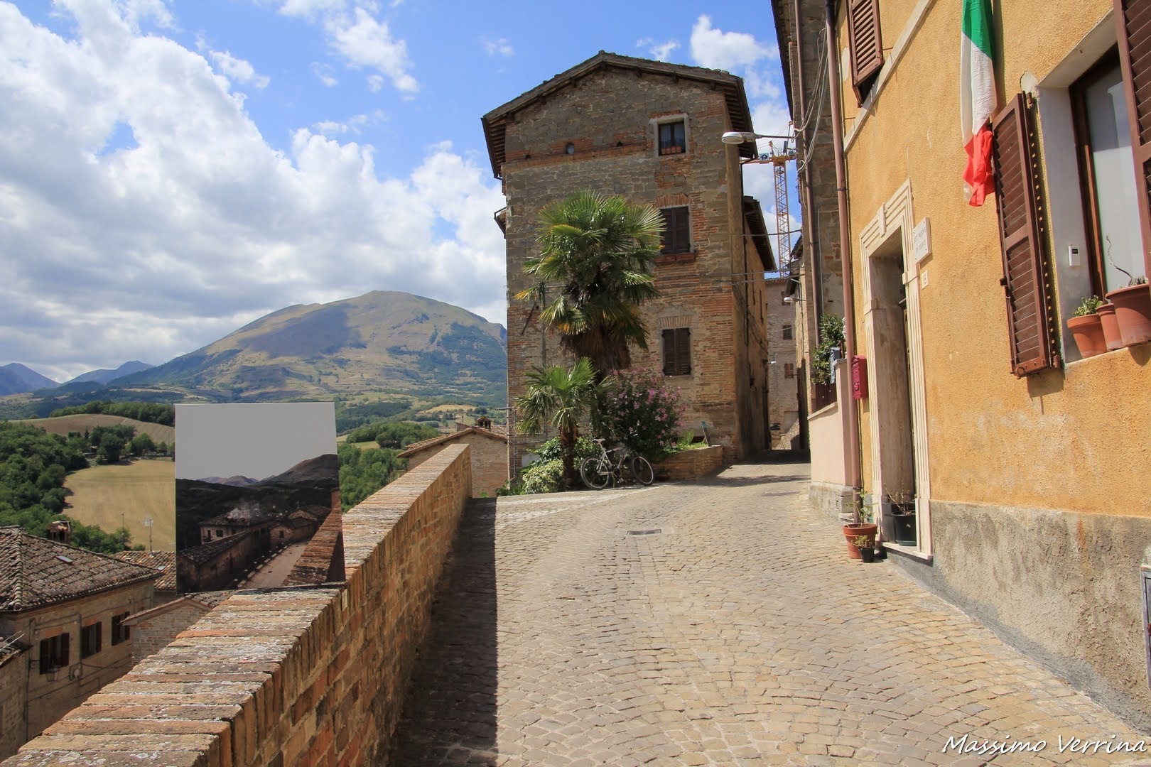 Sono sceso nella via sottostante, proseguendo quel giro turistico che mi porterà a vedere ogni singola via di questo borgo. Mi affaccio ad un altro punto panoramico, il relax offerto dalla visione dei Monti Sibillini è notevole, immaginatevi di essere lì col caldo dell’estate, il suono degli uccellini, e quello delle cicale in lontananza…