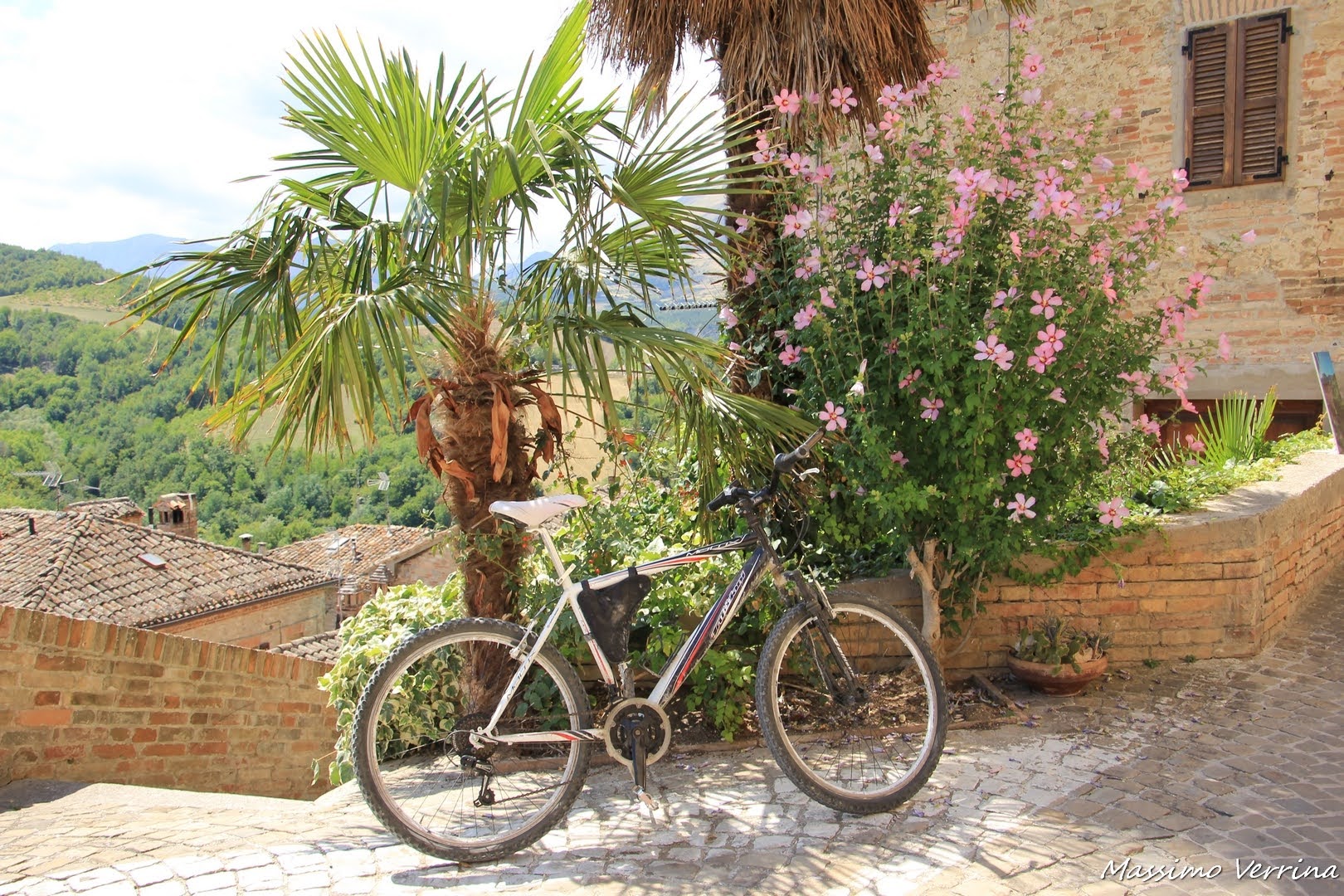 Nella via sottostante trovo un altro scatto fotografico sul muretto, e una visione davvero pittoresca, con quella casa circondata dal verde, con tanto di bicicletta che sembra messa a posta lì per il mio servizio fotografico….