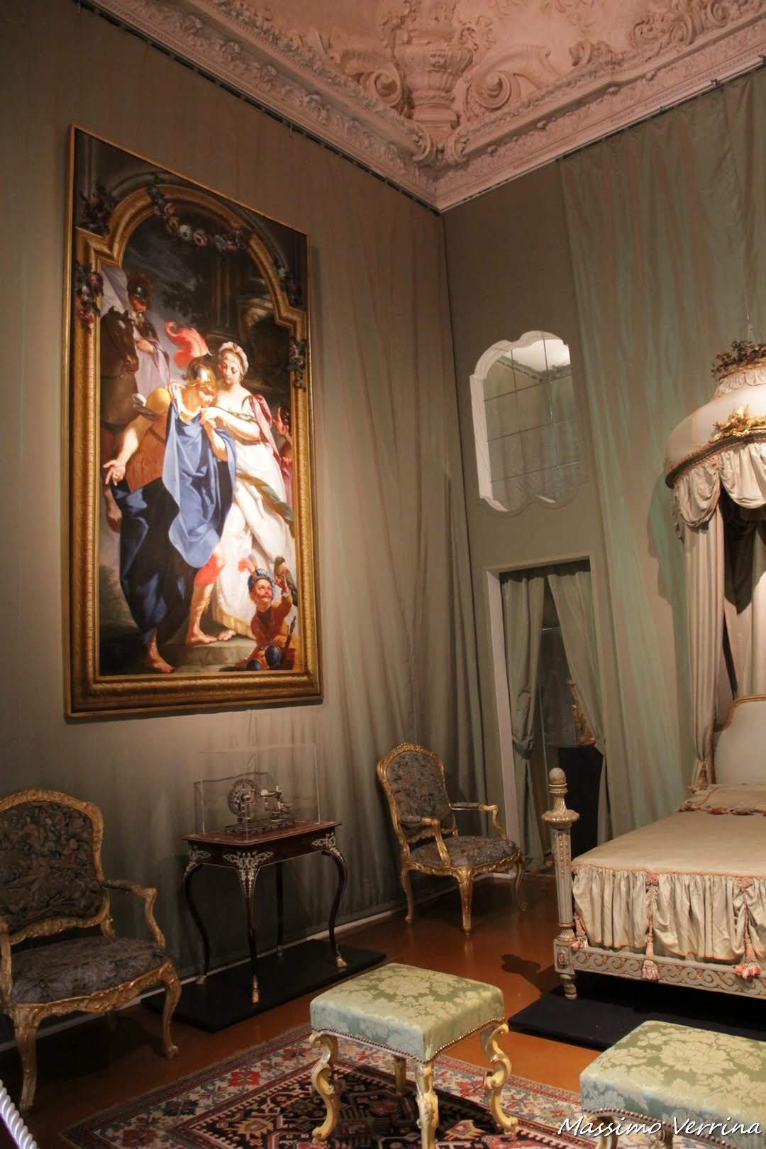 Anche nella prossima stanza troviamo una ricchezza di dettagli incredibile, sia gli arredi d’epoca che i quadri esposti sono opere da ammirare con stupore. Fra i quadri vi segnalo il ritratto di Carlo Emanuele III che vedete sulla parete di fronte a voi..