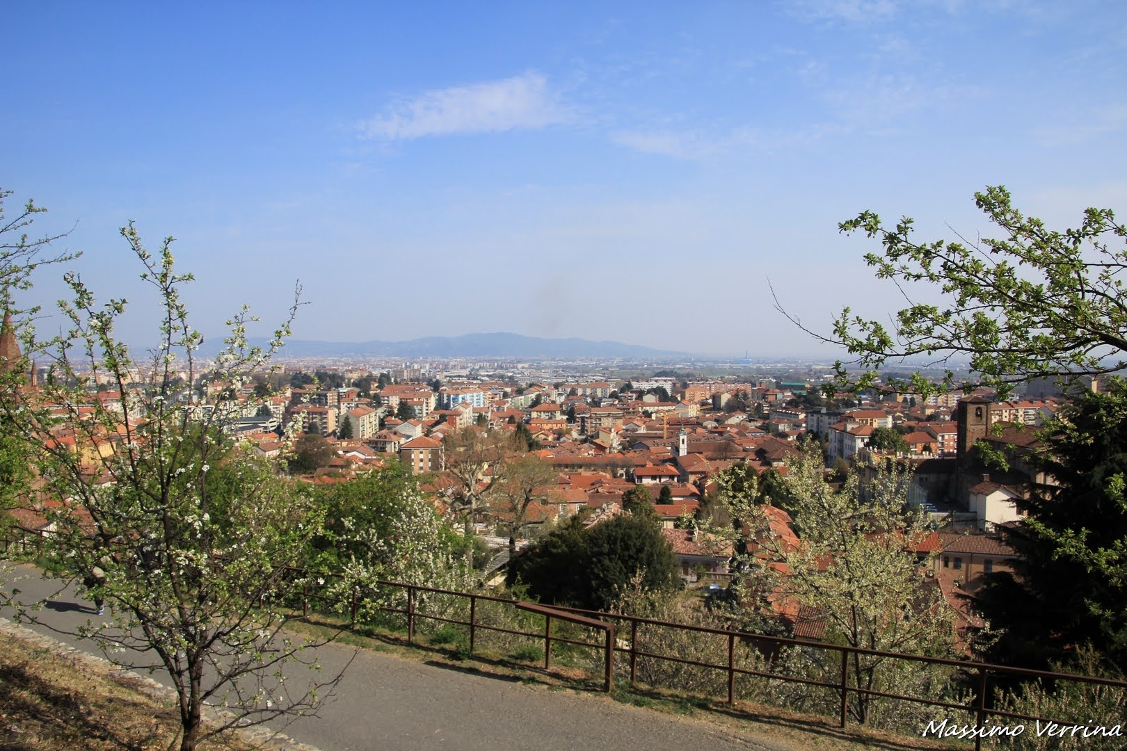 Dal vasto piazzale retrostante una strada scende nel cuore di Rivoli, da lì si può ammirare il vastissimo panorama che si estende fino alle Alpi, e che arriva ad abbracciare la grande metropoli, con i suoi infiniti palazzi e anche con lo smog tipico della pianura….