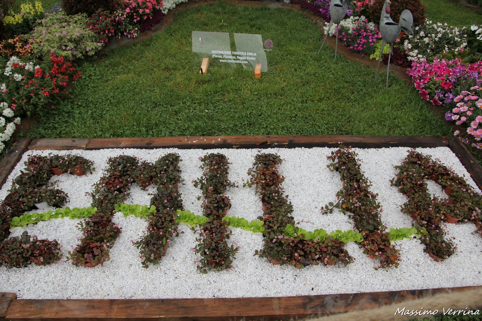 Nel frattempo ci stiamo avvicinando ad un’altra Regione che presenta le sue meraviglie e i suoi colori, in questo caso ad accoglierci è L’Emilia, con le piante hanno creato una scritta che ora vedrete meglio. In questo caso hanno scelto uno spazio circolare, al cui interno hanno creato le varie scene floreali….