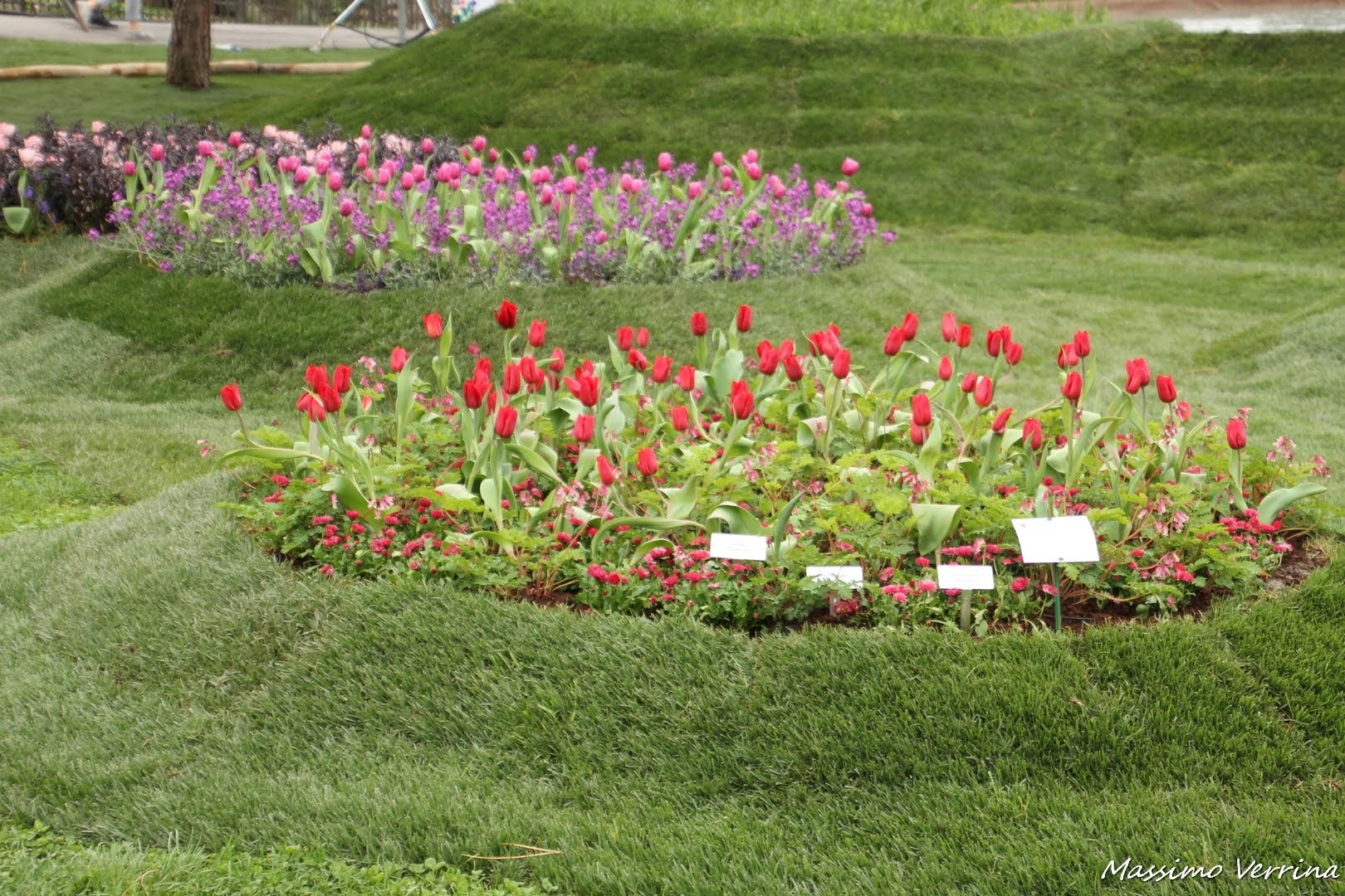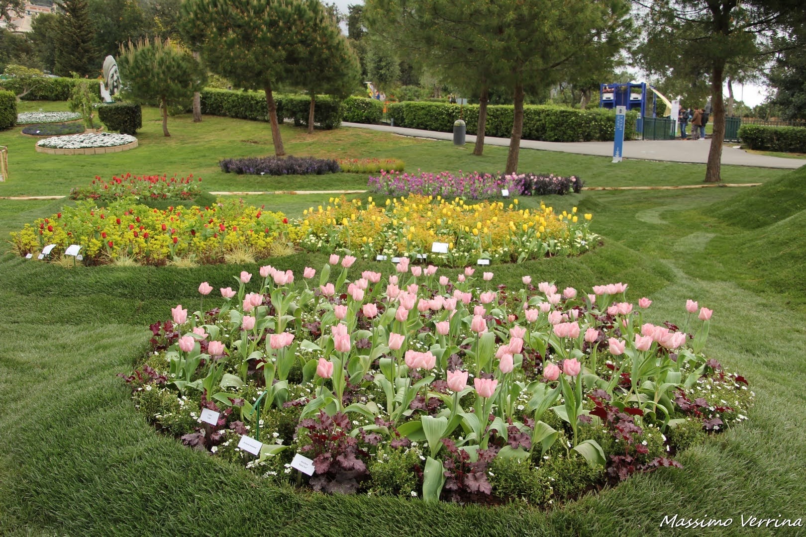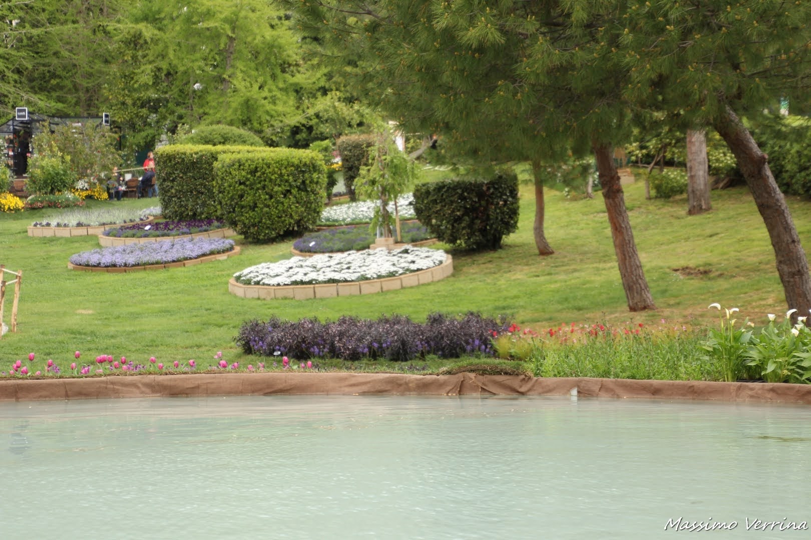 L’effetto del laghetto artificiale con la prospettiva delle aiuole fiorite alle spalle era davvero bella, anche se la giornata uggiosa aveva compromesso un po’ la vivacità dei colori, la scenografia era comunque ammirevole….