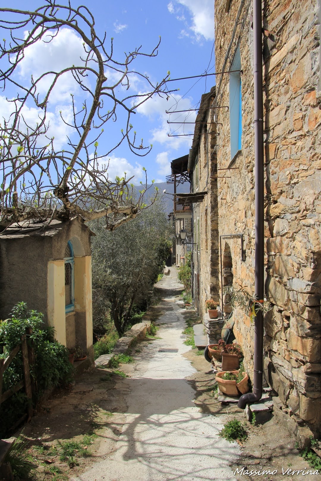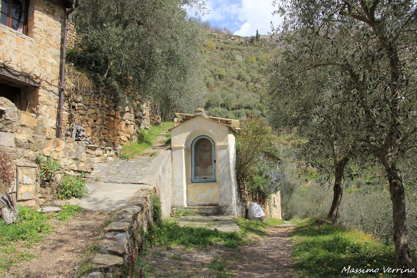 Le prime case del borgo, immerse negli ulivi, salutano gli escursionisti provenienti da Carpasio. Le atmosfere si fanno sempre più emozionanti, si percepisce proprio la vita genuina, quella fatta di piccole cose, l’umiltà della bellezza…