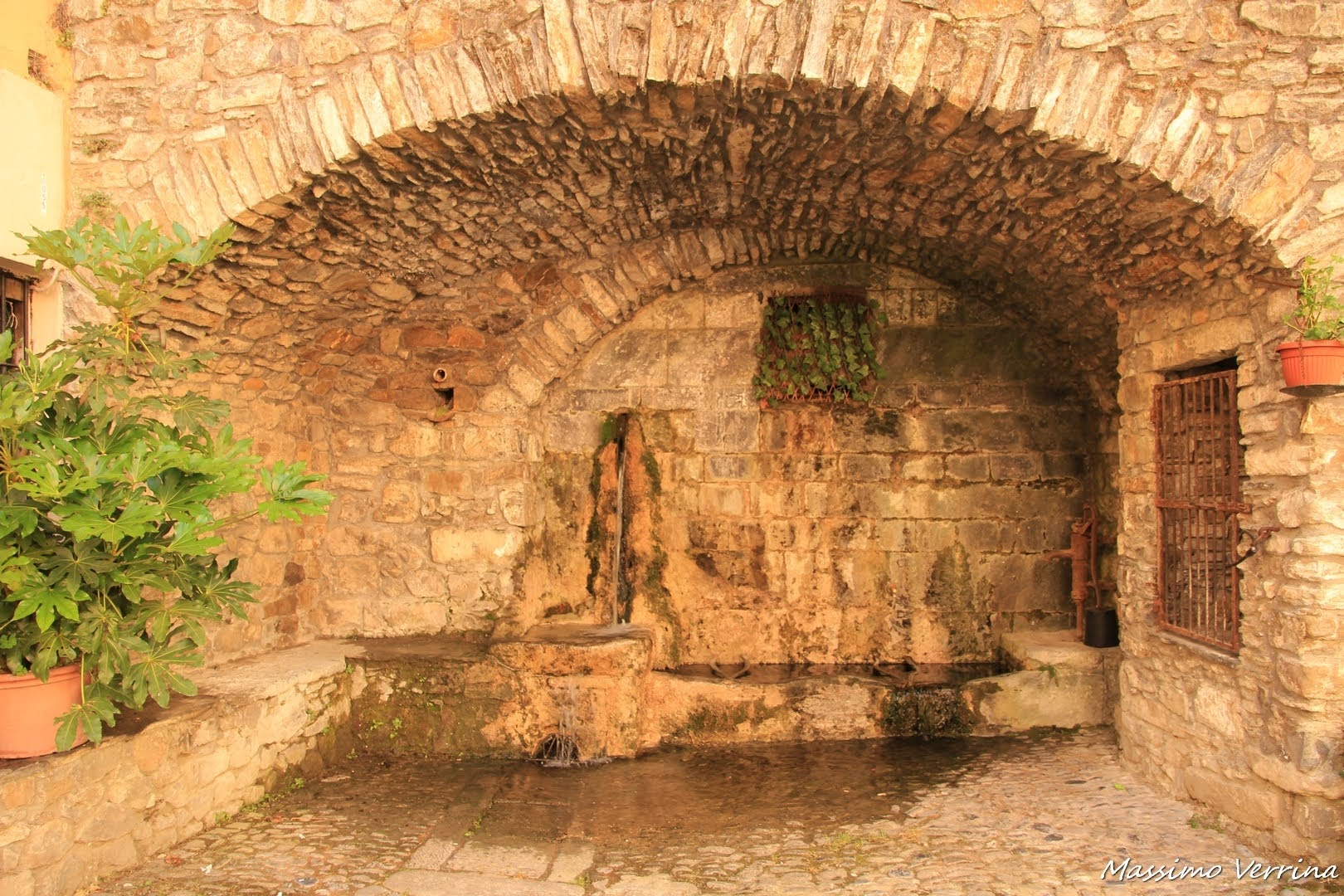 Sotto un arco di pietra ecco una freschissima fontana, in queste giornate torride è quello che ci vuole per rinfrescarsi un po’. La luce riflessa dalle case ha una tonalità caldissima, sembra dipingere questo piccolo angolo nascosto in questo gioiello di pietra…