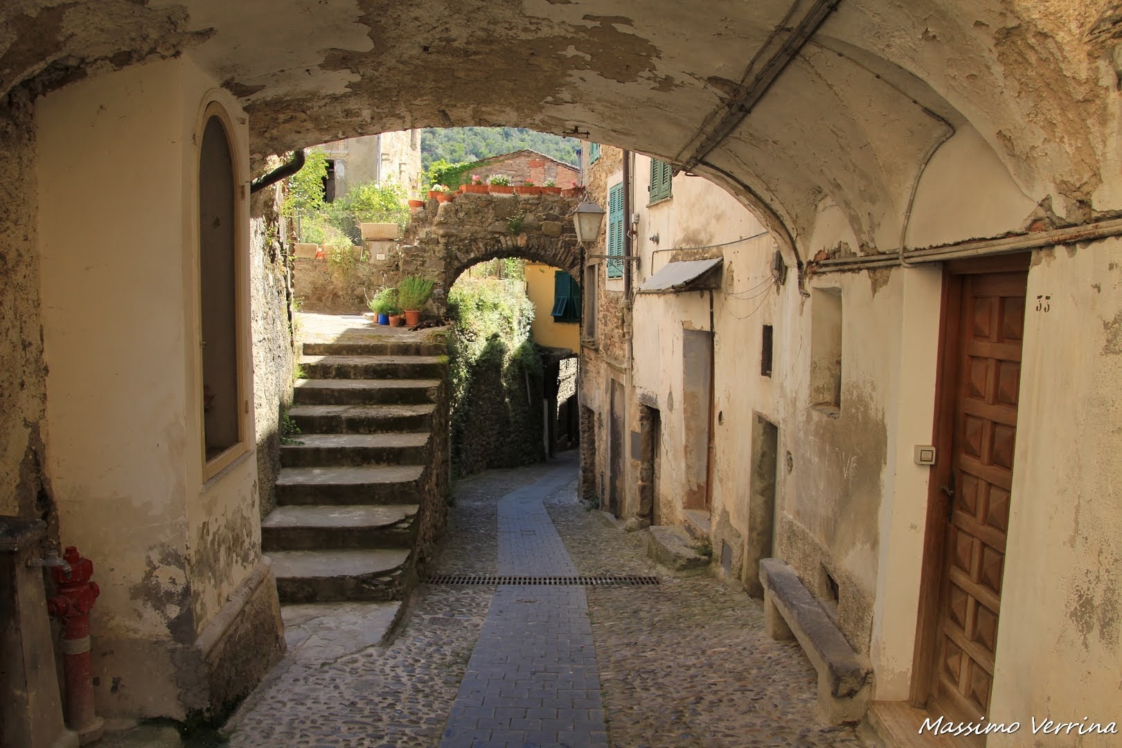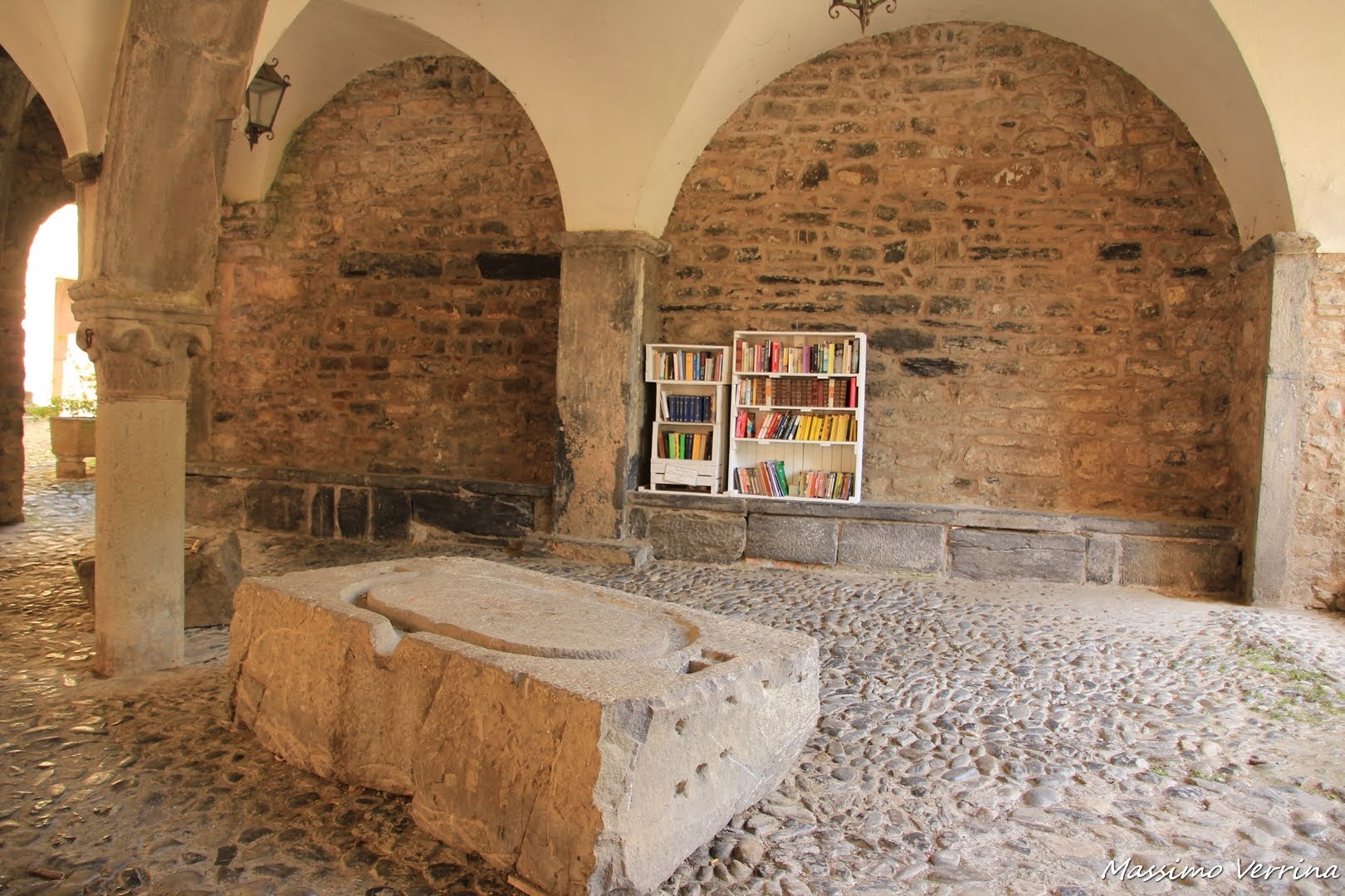 Scendiamo in un altro punto del borgo, qua c’è un incrocio di vie e una piccola piazza coperta, dove oltre al reperto storico in primo piano, possiamo osservare anche una piccola libreria, sono quegli spazi dove chi ha letto un libro può portarlo qua e scambiarlo con uno di quelli presenti, un’iniziativa lodevole che ho trovato in molti borghi della Liguria e anche nella città di Imperia. Anche molti locali hanno all’interno questo tipo di scambio letterario…..