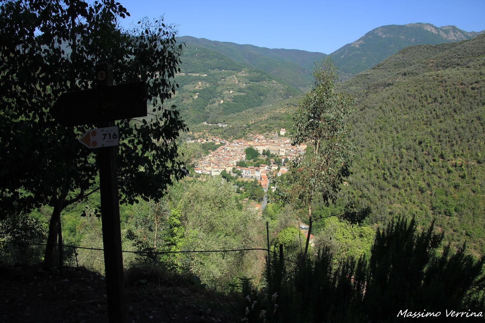 Arrivato in cima osservo il borgo dal quale sono partito, che da lì sembra fin più piccolo, data la relativa distanza. La ripidità del sentiero la si può notare con la pendenza che scende il monte dal quale sono salito….