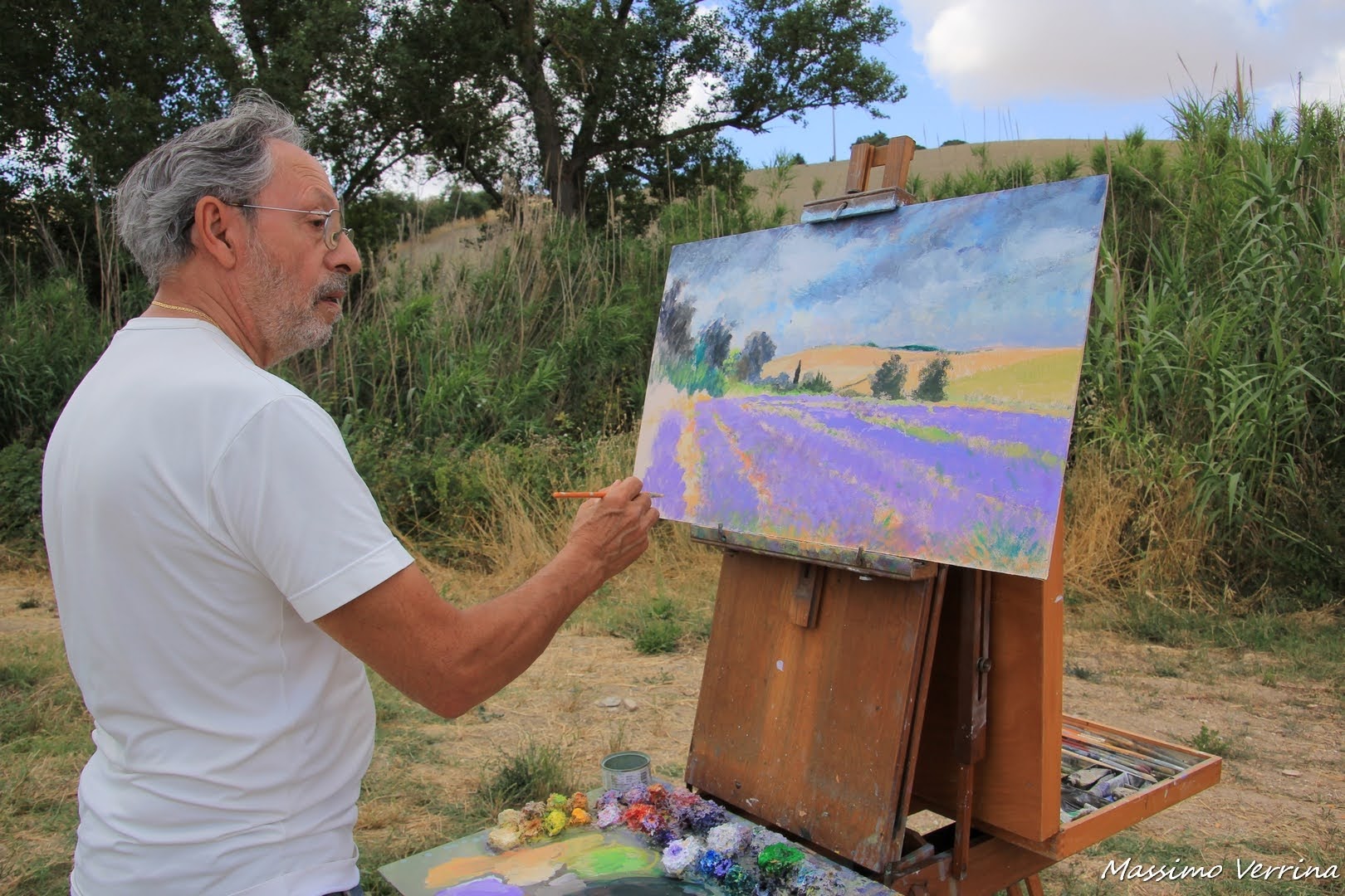 Ed ecco un pittore intento ad osservare i campi di lavanda per creare in tempo reale i suoi lavori, sono stato un po’ ad osservarlo, abbiamo anche scambiato 4 chiacchere. Fra artisti ci si intende, c’è che scrive poesie, c’è chi dipinge, c’è chi scatta foto, insomma qua tutto ruota attorno alla lavanda, e le cose si possono anche unire assieme….