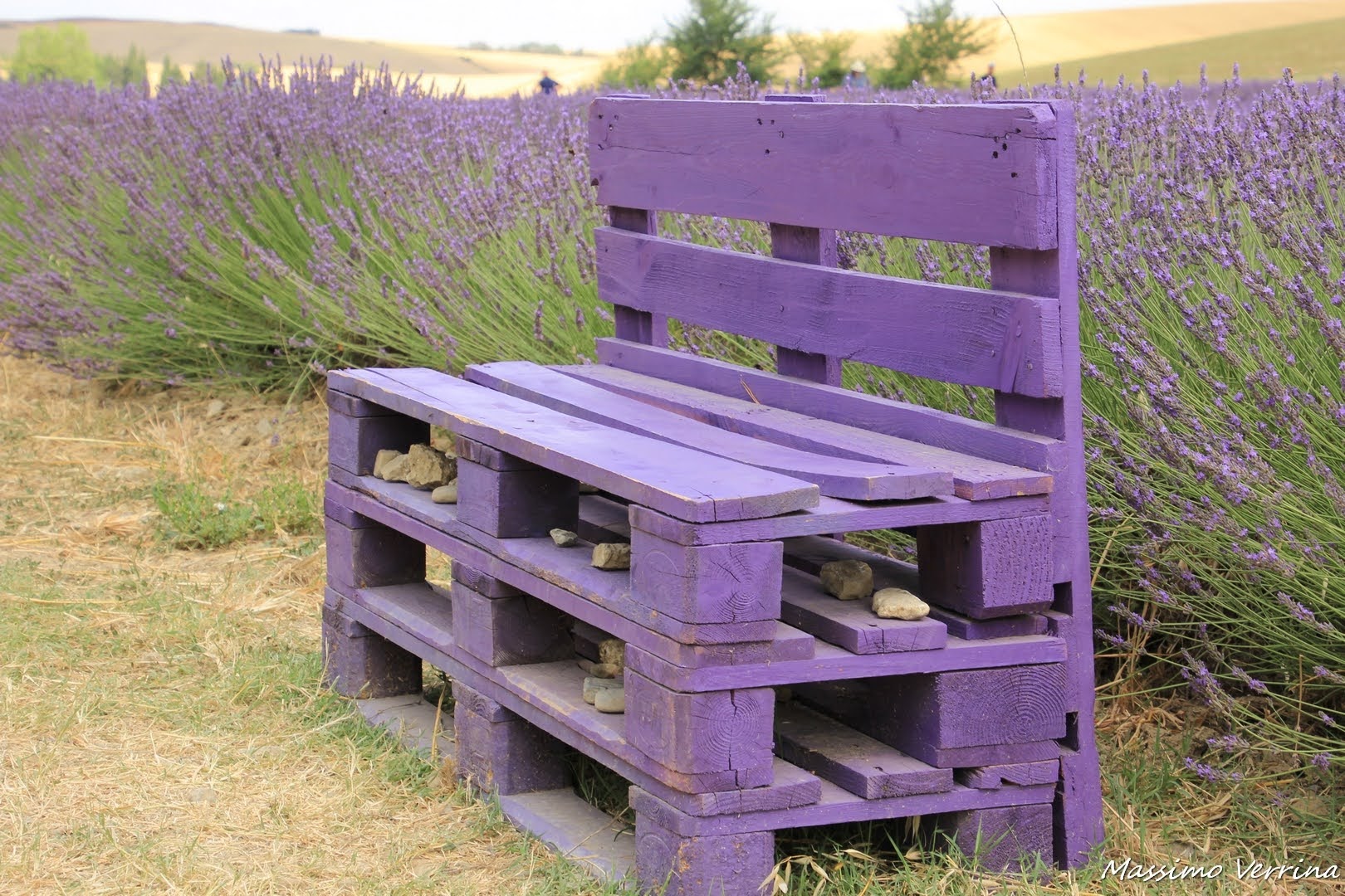 E sempre a proposito di cose artistiche, c’è chi ha pensato di creare una panchina color lavanda semplicemente unendo dei bancali, un’idea semplice quanto originale, che fra le altre cose ho visto adottare anche nella mia Liguria in qualche stabilimento balneare per gli aperitivi serali…
