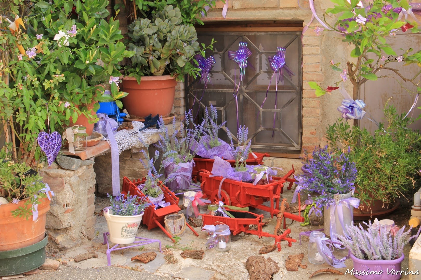 Quando ho visitato questo borgo era il periodo della lavanda, e guardate un po’ la creatività degli abitanti cosa hanno composto! Davanti ad una casa in stile campagnolo una miriade di oggetti con i colori della lavanda e fiori di vario tipo, danno vita ad uno spettacolo unico, anche profumato per giunta. Direi che di tutto il borgo questo è di sicuro l’angolo che ho trovato più singolare…