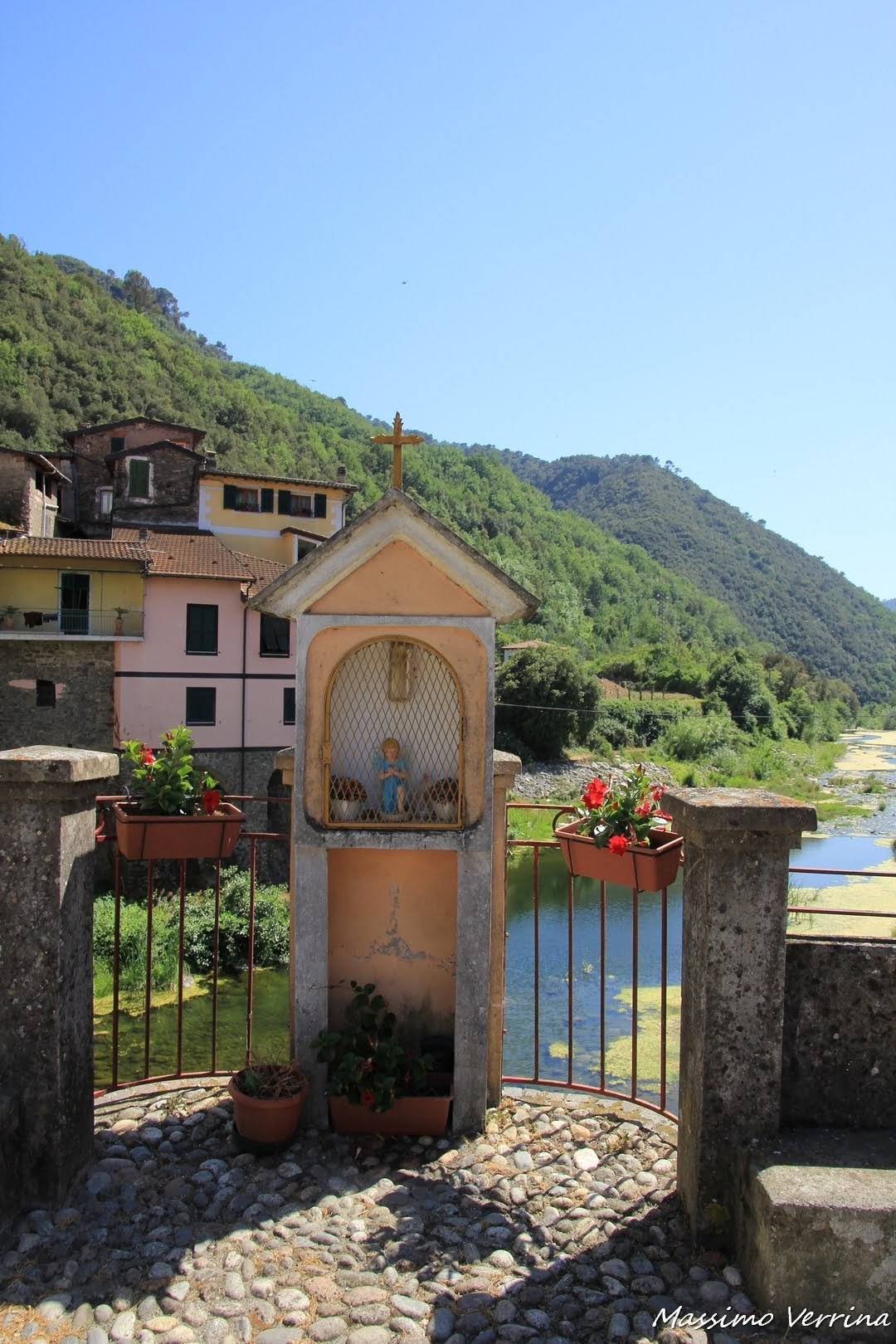 Al centro del ponte ecco un piccolo luogo di preghiera, sono molti i ponti liguri che presentano al centro queste rappresentazioni sacre, che in qualche modo sembrano anche proteggere il borgo stesso…