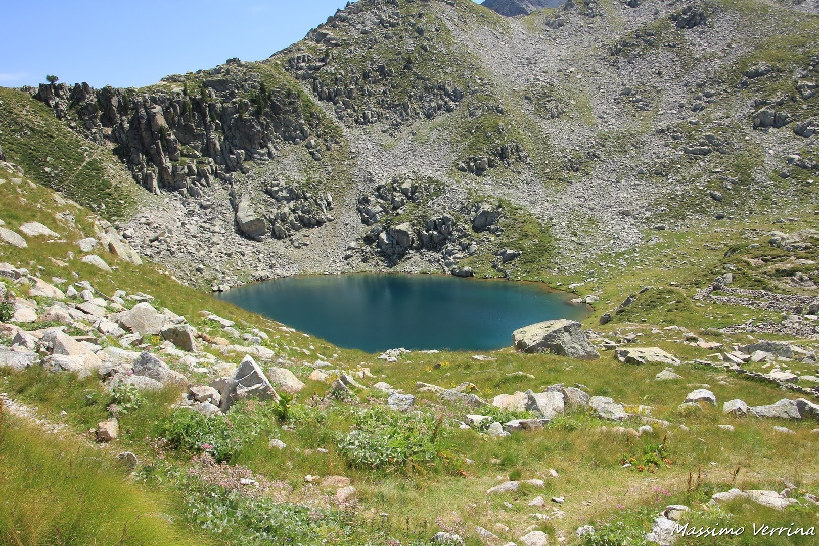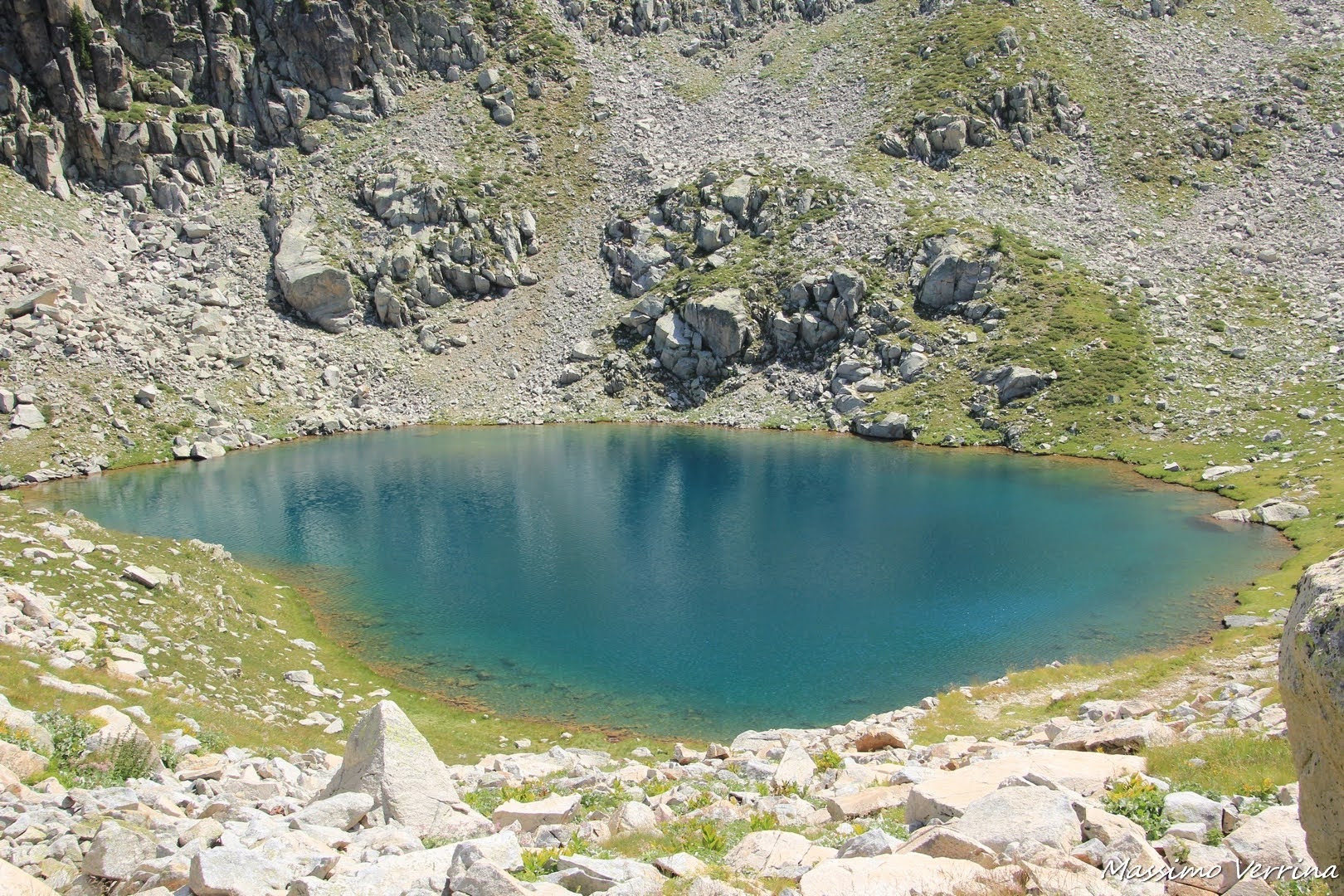 Superato il forte, il mio percorso ad anello, prima di cominciare la lunghissima discesa, mi permette di osservare un quarto lago. E’ di forma circolare, assomiglia ad un piccolo cono vulcanico, le sue acque sono più profonde degli altri laghetti, lo dimostra la colorazione blu più intensa della sua parte centrale….