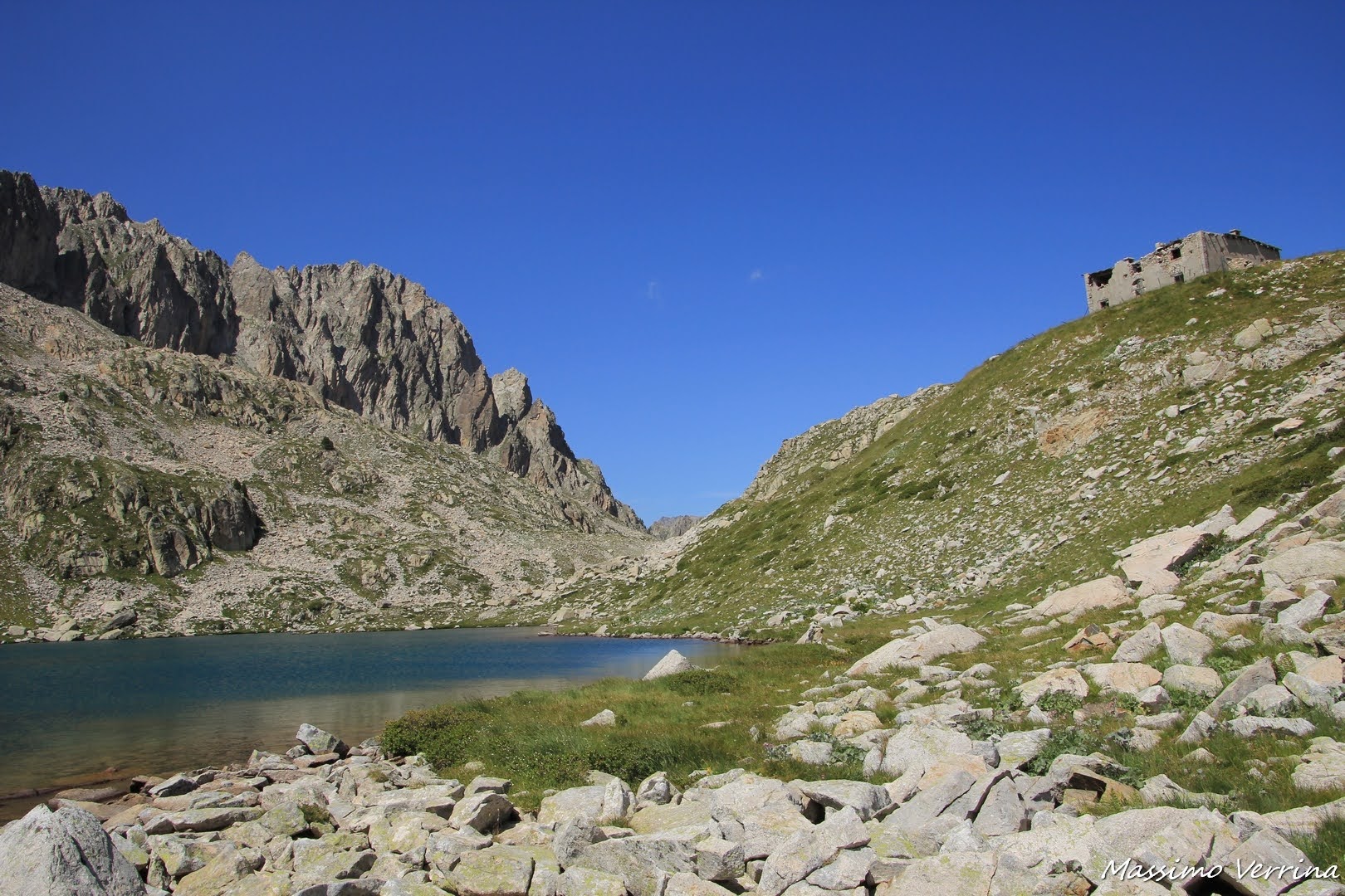 Sono sceso all’ultimo dei laghetti, lassù il forte osservato prima appare maestoso e impenetrabile, e si staglia contro il blu intenso del cielo d’alta montagna….
