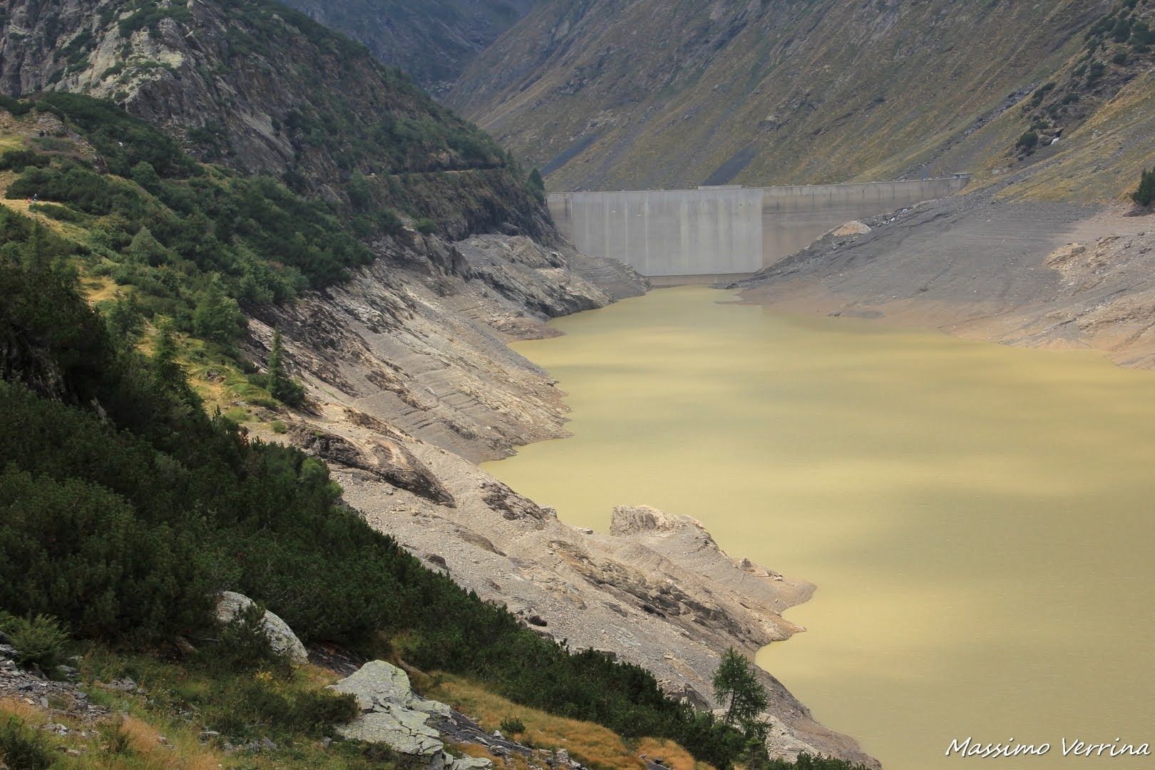 Dopo la lunghissima salita era ora di scendere a valle attraverso il sentiero in parte nuovo di cui vi ho accennato all’andata. Era tempo di bilanci, di riflessioni, su quello che questa escursione mi aveva regalato. Intanto l’amara sorpresa di trovare il Lago vuoto, e poi questo inedito paesaggio, che dopo tanta acqua trovata lungo la salita, ancora una volta mi aveva stupito per i colori, i contrasti, lo scenario stranissimo osservato…