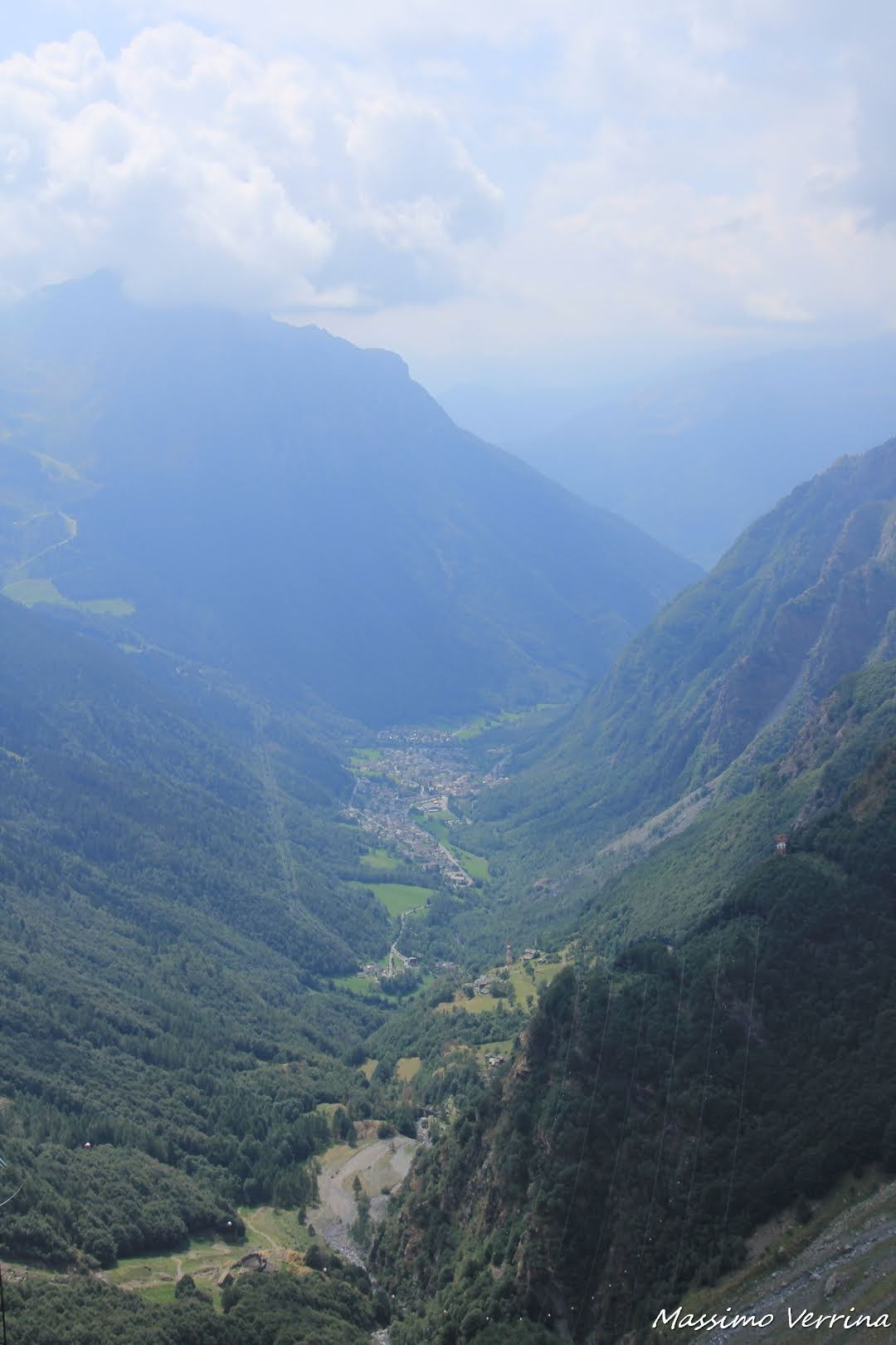 Col teleobiettivo ecco una bella prospettiva di Valbondione immerso in quella luce bluastra tipica delle giornate estive in montagna quando la foschia spesso non permette di vedere molto lontano….