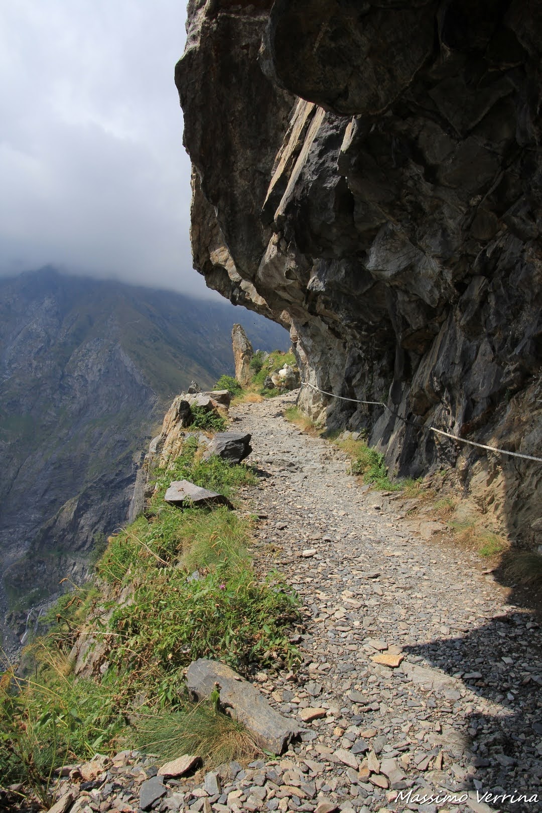 L’unico rischio di percorrere sentieri simili a questo è dovuto alle possibile pietre che possono precipitare dall’alto, un paio di anni fa sulle Alpi Marittime affrontando un sentiero simile a questo ho sentito nettamente il rombo di alcune pietre che rotolavano a valle, la causa era stata di alcuni stambecchi in cima alla montagna, che muovendosi avevano fatto cadere a valle le grosse pietre, per fortuna ero più indietro e avevo potuto assistere a tutta la sequenza degli eventi…