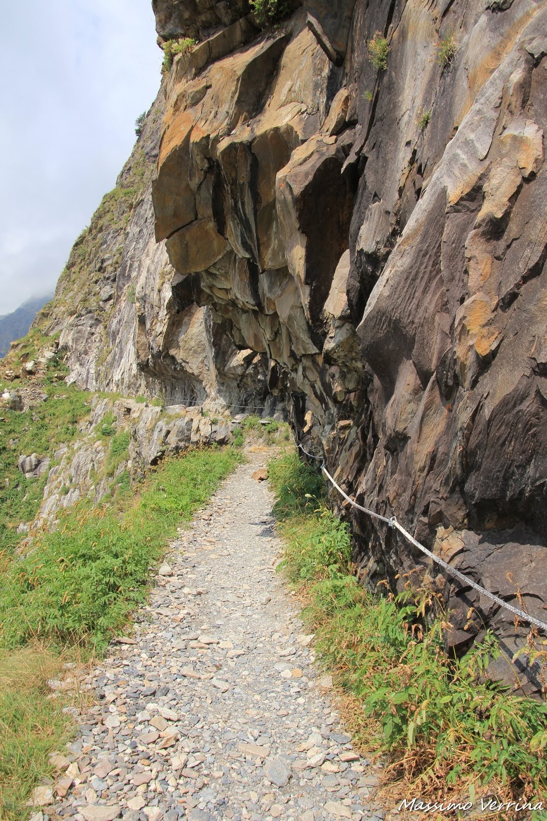 Mentre le nubi si addossavano alle alte cime stavo finendo di percorrere il suggestivo camminamento fra la roccia di questo sentiero bellissimo, i panorami da lassù erano straordinari, una balconata rocciosa affacciata sull’immensità della vallata che avete visto nelle immagini di prima…