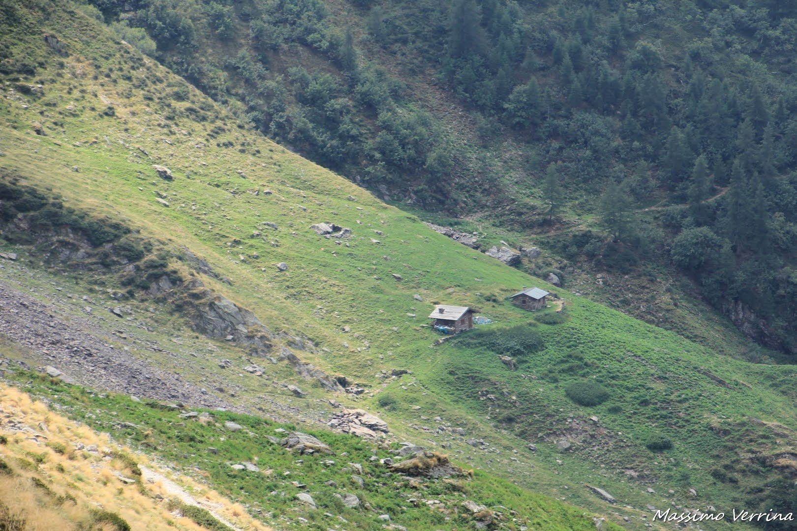 Superata la parte più spettacolare dell’escursione il sentiero torna ad essere tranquillo, i verdi prati lasciano spazio a delle radure di pietre, più in basso vediamo un paio di casette in pietra che danno una nota di bellezza ulteriore a questo spettacolare paesaggio…