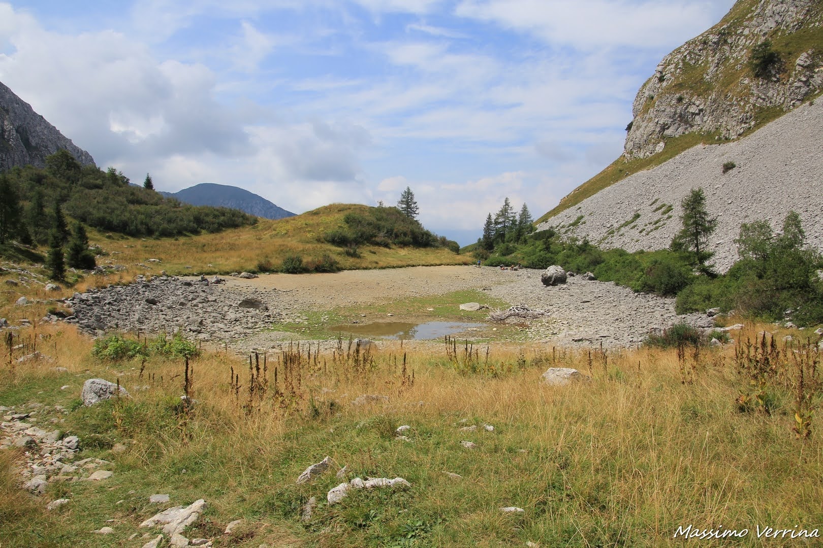Mi siedo al centro di quello che doveva essere il lago, davanti a me solo una piccola pozza melmosa, ciò che rimaneva del laghetto alpino, potevo solo consolarmi con la bellezza delle montagne attorno, e con quell’aria fresca che mi faceva riprendere dopo la grande sudata della salita…