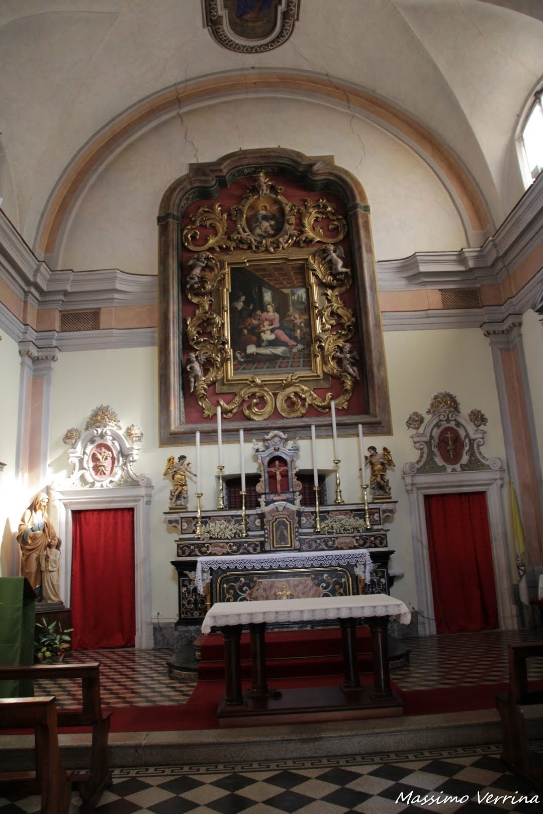 Entro in punta di piedi nella piccola chiesetta, un’atmosfera raccolta, quasi intima, mi accoglie in un anfratto di silenzio. In questo piccolo spazio è racchiusa molta arte, sono colpito dalle numerose decorazioni, dall’altare, dal quadro riccamente decorato alle sue spalle. Questo è un piccolo gioiello artistico da scoprire e apprezzare con calma…