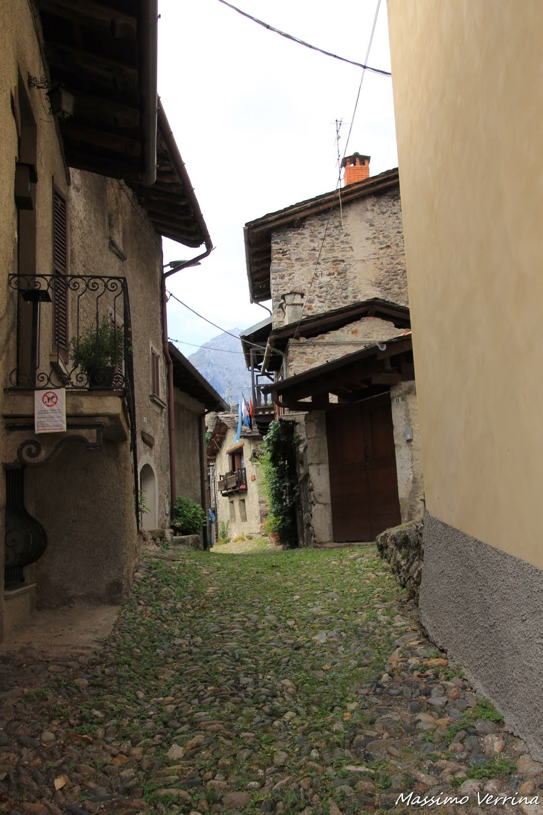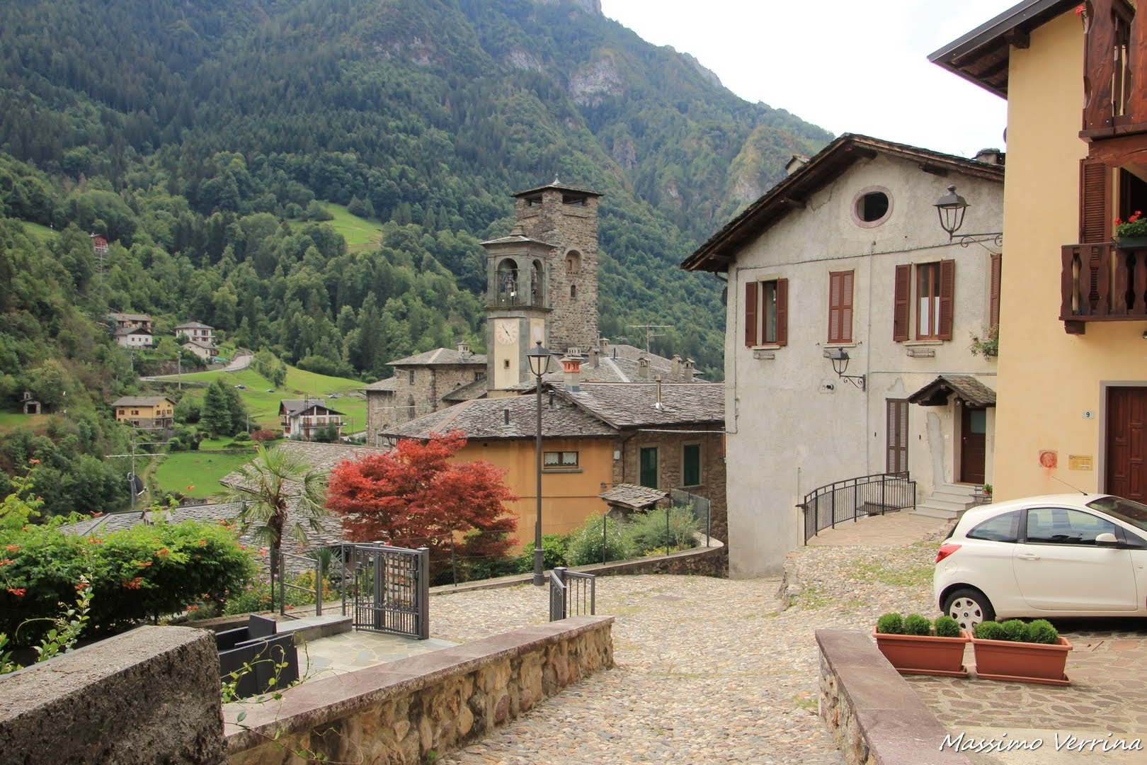 C’è il profumo dell’erba, quello delle montagne, che si unisce ai profumi del borgo, quelli che escono dalle case, dalle finestre aperte per il caldo dell’estate, tutti aromi che accompagnano il mio cammino in queste vie lontane dal traffico dell’arteria principale…