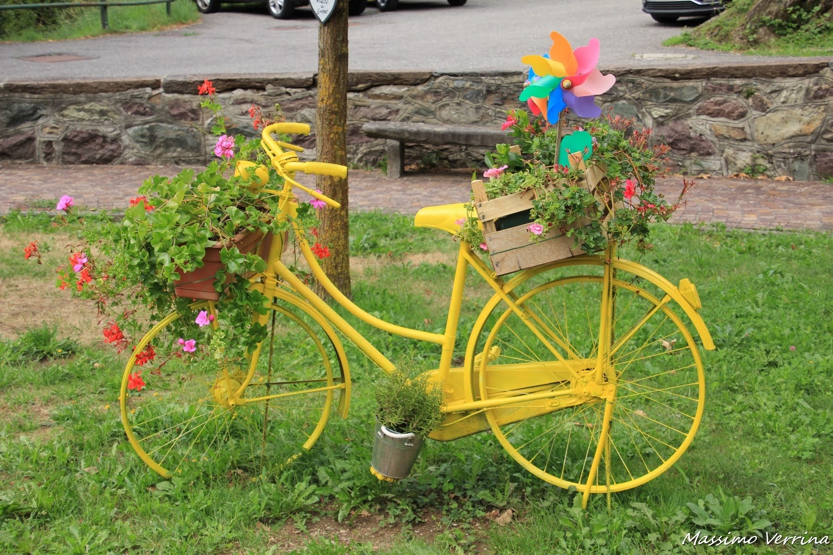 Che carino il messaggio di benvenuto per chi passa le vacanze in questi luoghi, 😊👍: si può dire un “benvenuto di cuore”, 😉🙂. Coloratissima la bicicletta posta all’entrata del borgo, 😀: molto originale l’idea di trasformarla in una fioriera, 👍, e poi il colore giallo e la girandola multicolore le danno quel tocco in più, 😉. I cuori si trovano anche nei posti più inaspettati, come questo lavatoio… a Gromo hanno reso il loro borgo romantico in ogni suo angolo, 🥰. E per finire non si può non rimanere incantati davanti ad un paesaggio con così tanto verde… bellissimo, 🤩. Gromo è stato un bellissimo borgo da “visitare” virtualmente e chissà… magari in futuro anche dal vivo, 😉. Un caro abbraccio e buona serata, 😉😘🤗😊.