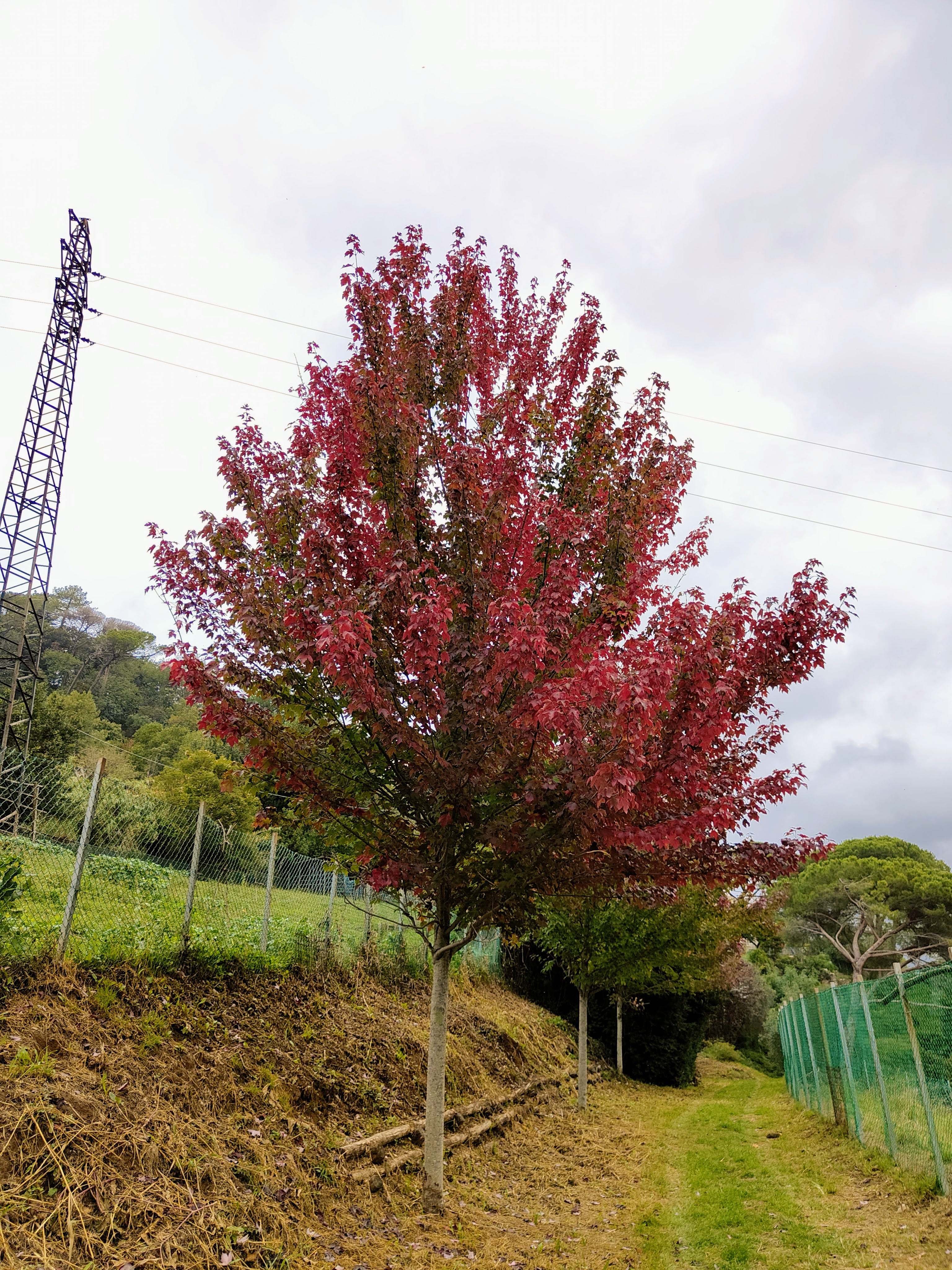 molto bello l’albero con le foglie rosse… chissà che spettacolo quando il vento le fa volteggiare leggere… qualcuna cade a tera… altre volano silenziose…