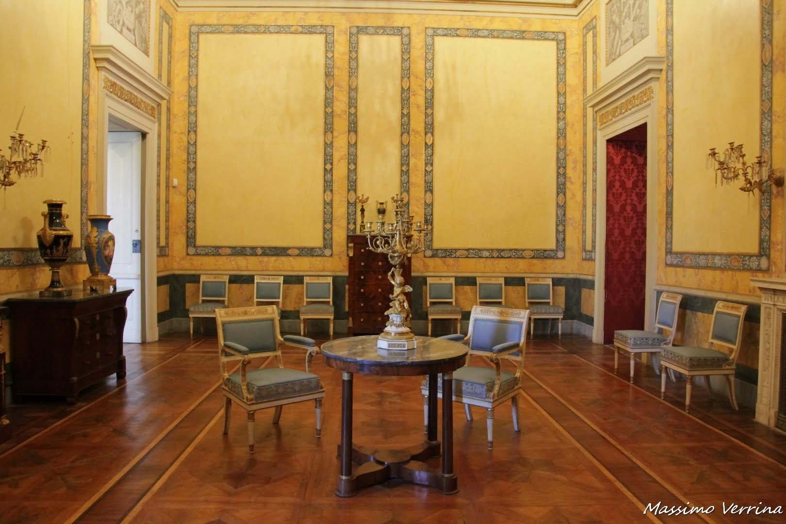 I lampadari e i soffitti di queste stanze sono davvero eleganti, colmi di quella ricchezza che elevava la qualità di questa villa nobiliare, ricca di modernità per l’epoca, come ci hanno spiegato le varie guide nel corso di questa visita..