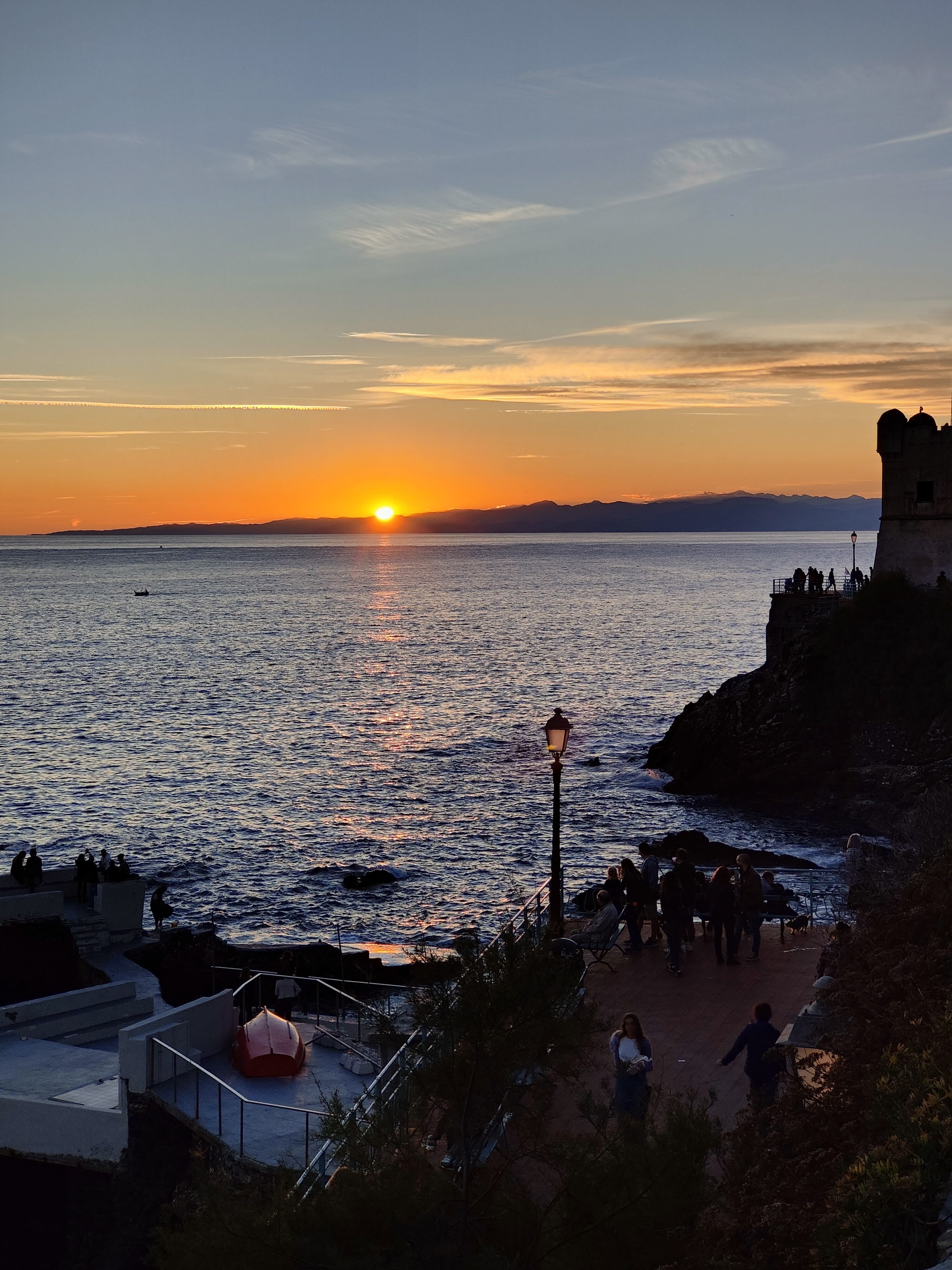 Dalla terrazza panoramica ammiro un tramonto spettacolare, lo sguardo si perde fino alla lontana Riviera di Ponente, tutto è perfetto, meraviglioso, incantevole, un vero tripudio di emozioni nasce in me trasformandosi in versi di poesia.