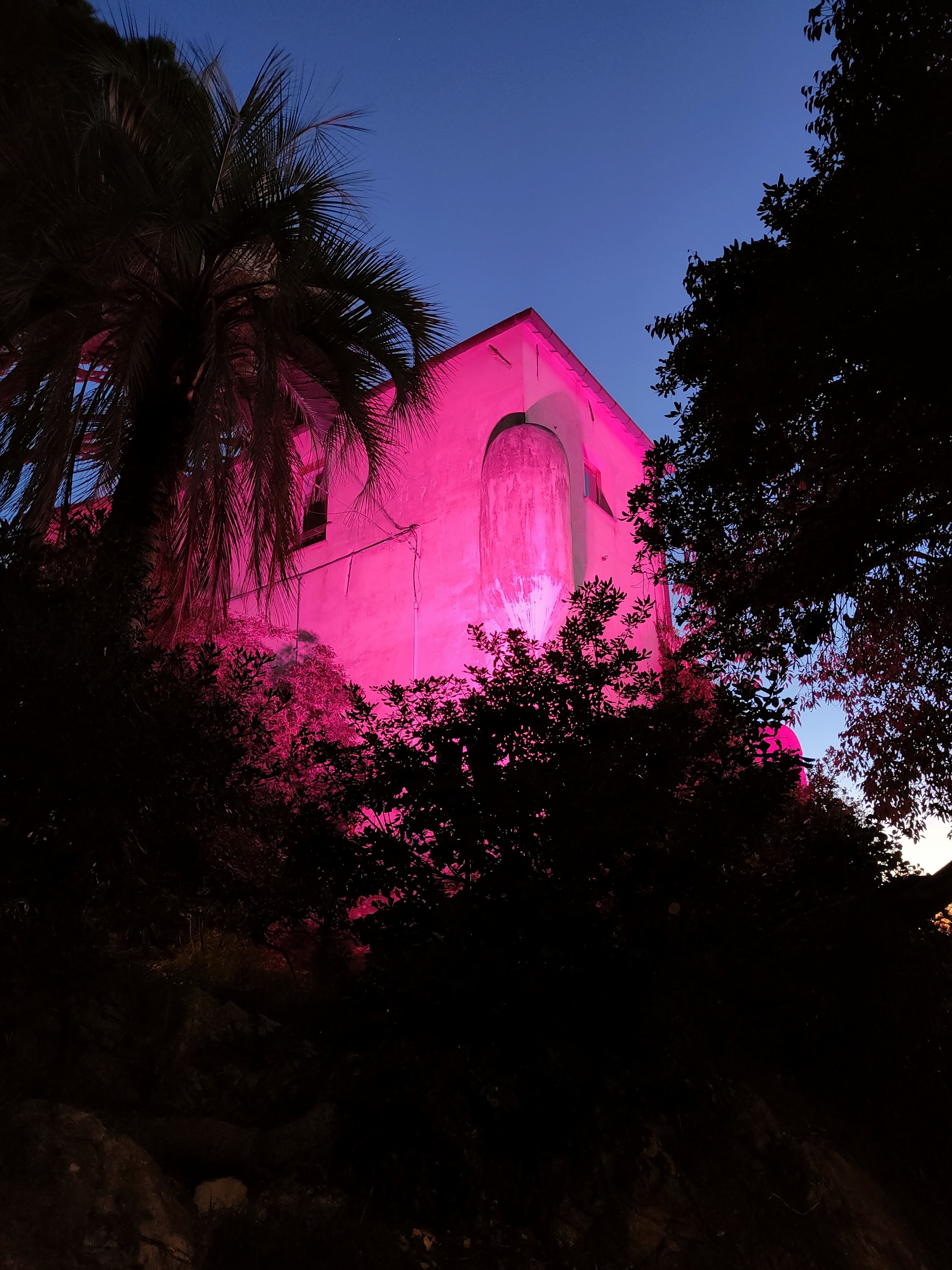 E dopo aver ammirato tutti i colori del tramonto è giunto il momento di ammirare i colori della sera. Entriamo nella piccola insenatura che ospita il porticciolo di Nervi, qua fra le tante meraviglie quest’anno hanno inserito delle belle novità, ovvero delle luci led colorate che illuminano i vari punti esaltandone la loro bellezza. Iniziamo ad ammirare i colori cangianti sulla piccola torre che sovrasta il porticciolo…