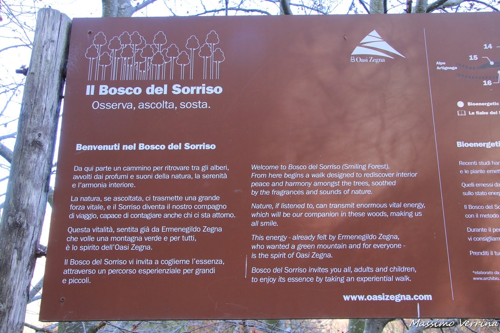 Con questa nuova narrazione vi porto a conoscere il bosco del sorriso, nell’oasi Zegna, un luogo nel quale ritrovare la pace con se stessi attraverso il contatto con la natura. Con questi primi cartelli voglio mostrarvi la vera essenza di questo percorso nel bosco, e i motivi per i quali vale la pena percorrerlo…