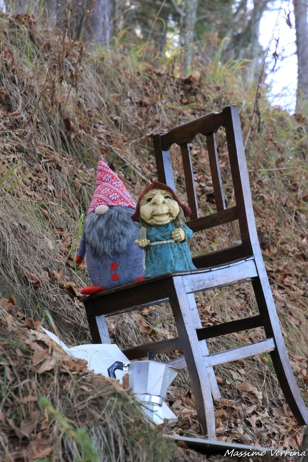 Intanto questo folletto si leggeva una fiaba, forse per dimenticarsi di questa stagione anomala, o forse per sognare un mondo diverso, di cui c’è sempre bisogno. Ma chissà chi stava mettendo queste figure nel bosco!….